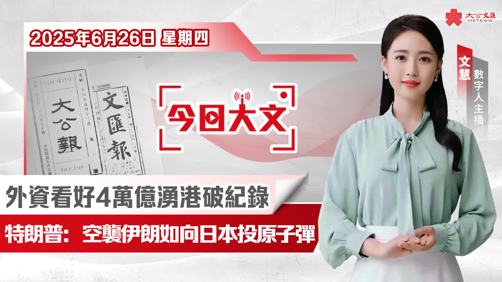 今天是2025年6月26日(星期四),大公文匯網與您速覽報紙看點。