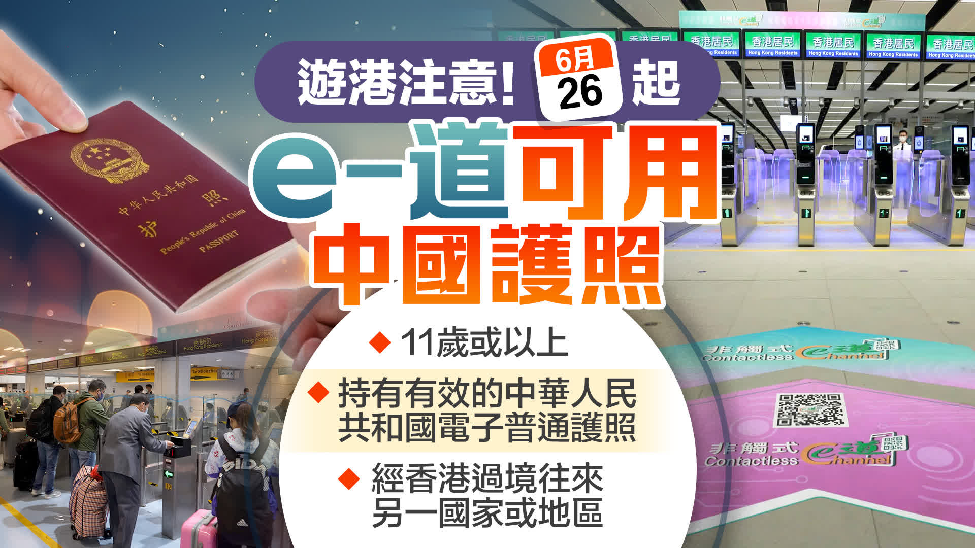 大公文匯全媒體報道,入境事務處早前公布,今日(26日)起擴展自助出入境檢查(e-道)服務至符合下列資格的中華人民共和國護照持有人。