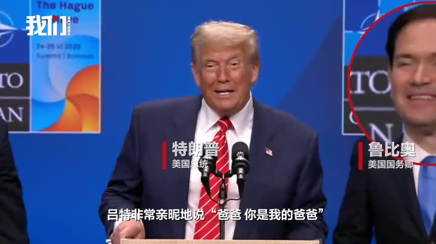 他還模仿呂特的語氣說:「他剛才確實非常親昵地說『爸爸,你是我的爸爸』」,一旁的美國國務卿魯比奧憋不住笑了。