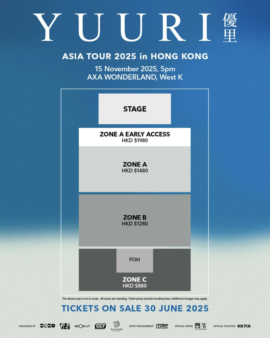 這次香港站的演出僅此一場,樂迷將親臨AXA Wonderland的戶外舞台,在維港之畔、星空為幕的絕美氛圍中,沉浸於優里最經典的動人曲目,感受真情滿溢的音樂魅力。只此一夜,獨一無二,切勿錯過。