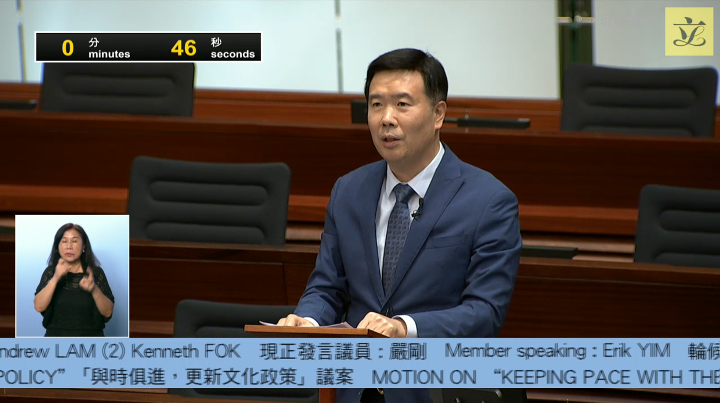立法會大會今天(26日)通過馬逢國議員動議、經梁子穎議員與本人修正的「與時俱進,更新文化政策」議案,討探各界積極制定對接國家文化產業發展規劃、建設國際文化藝術交流中心的產業政策的契機,在更廣泛的基礎上全面深入探索國際、國內文化交流與合作,促進文化創意與創新。