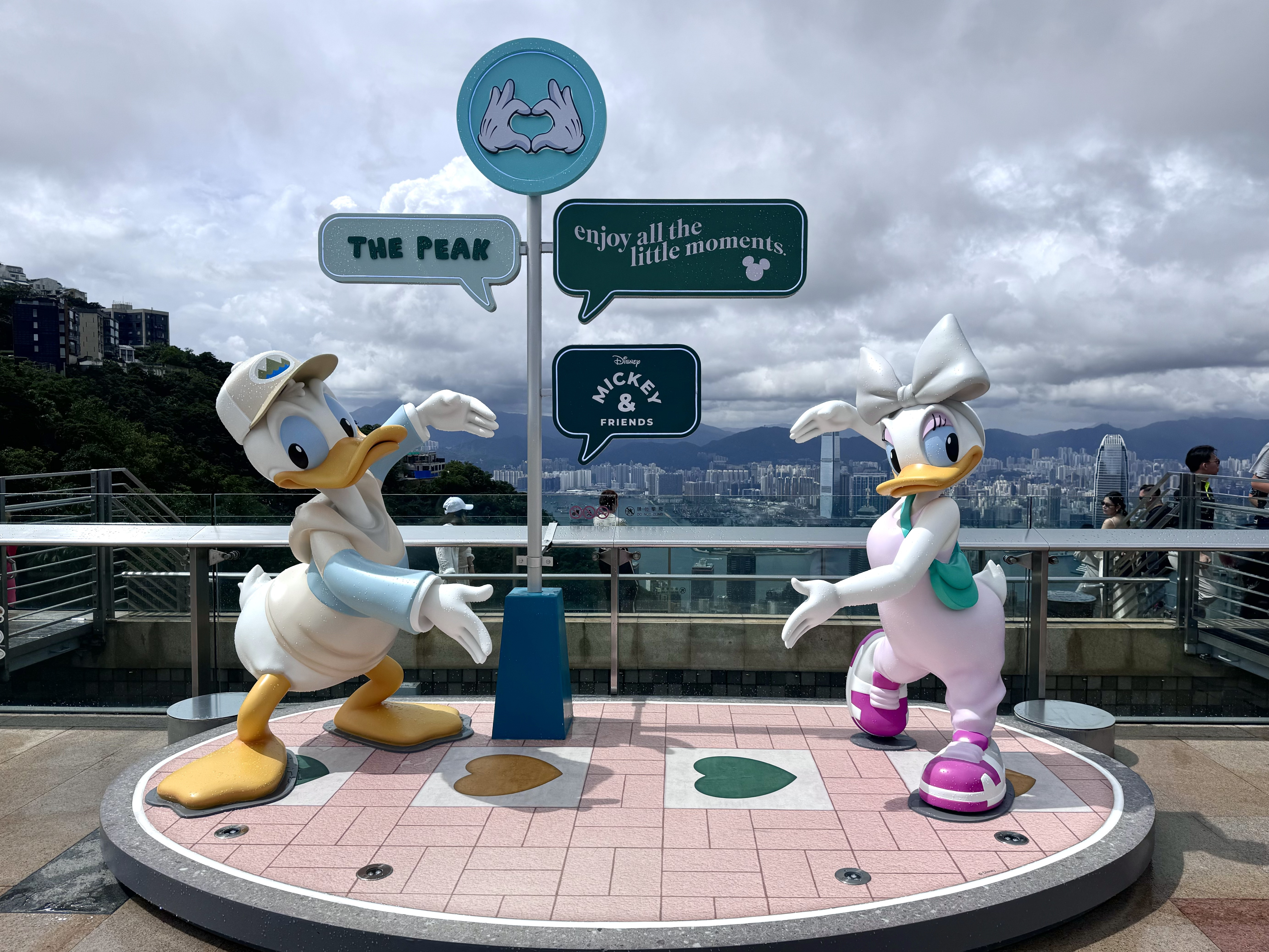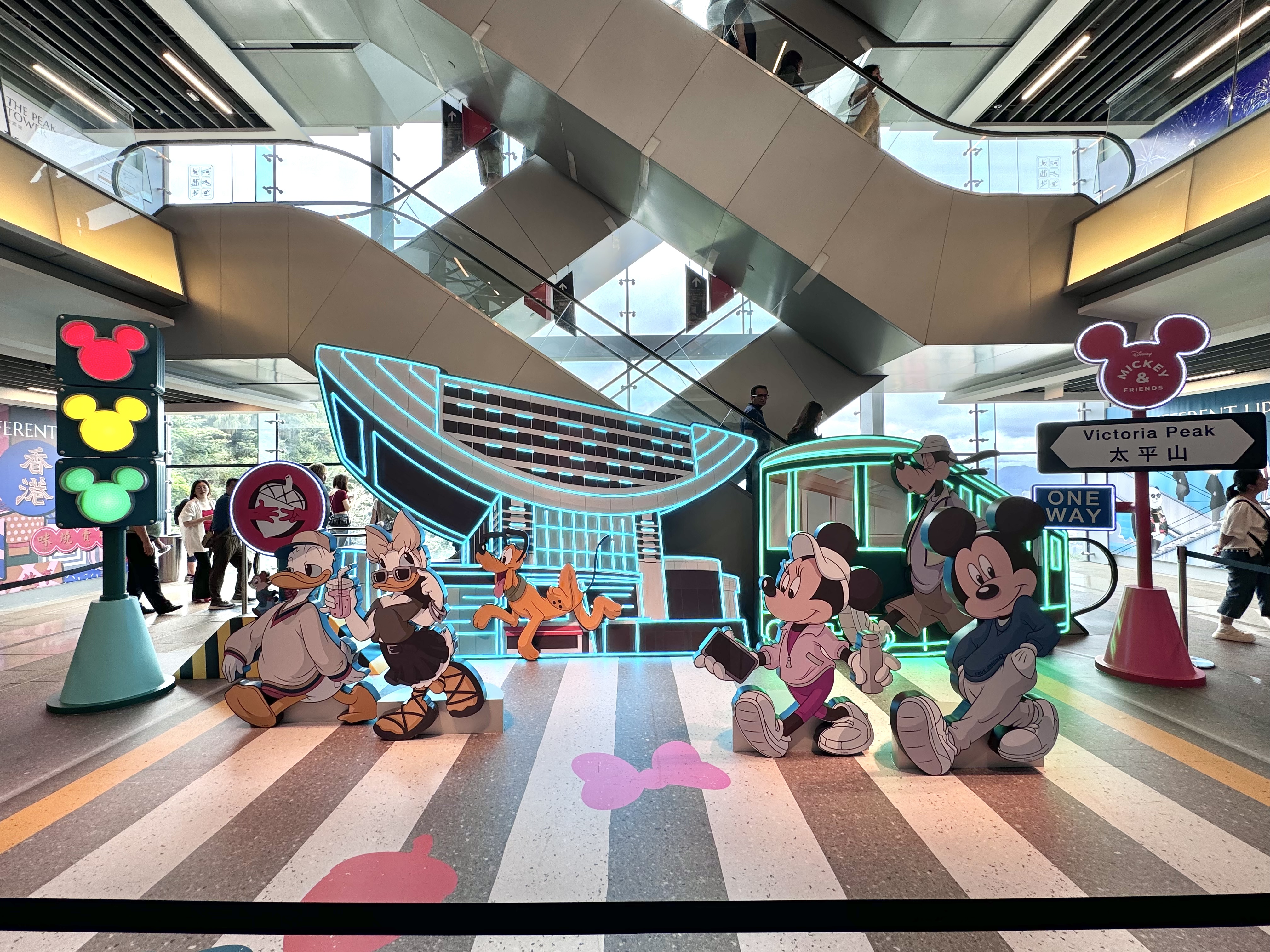 活動設置十大主題打卡區,包括米奇「I LOVE HK」、米奇「愛心觀景台」、唐老鴨與黛絲的「浪漫角落」等,讓遊客與迪士尼人氣角色合影留念。山頂纜車亦融入米奇和好友的元素,車窗及車頂都貼有多彩圖案,讓迪士尼角色陪伴遊客溫馨地度過整個太平山之旅。