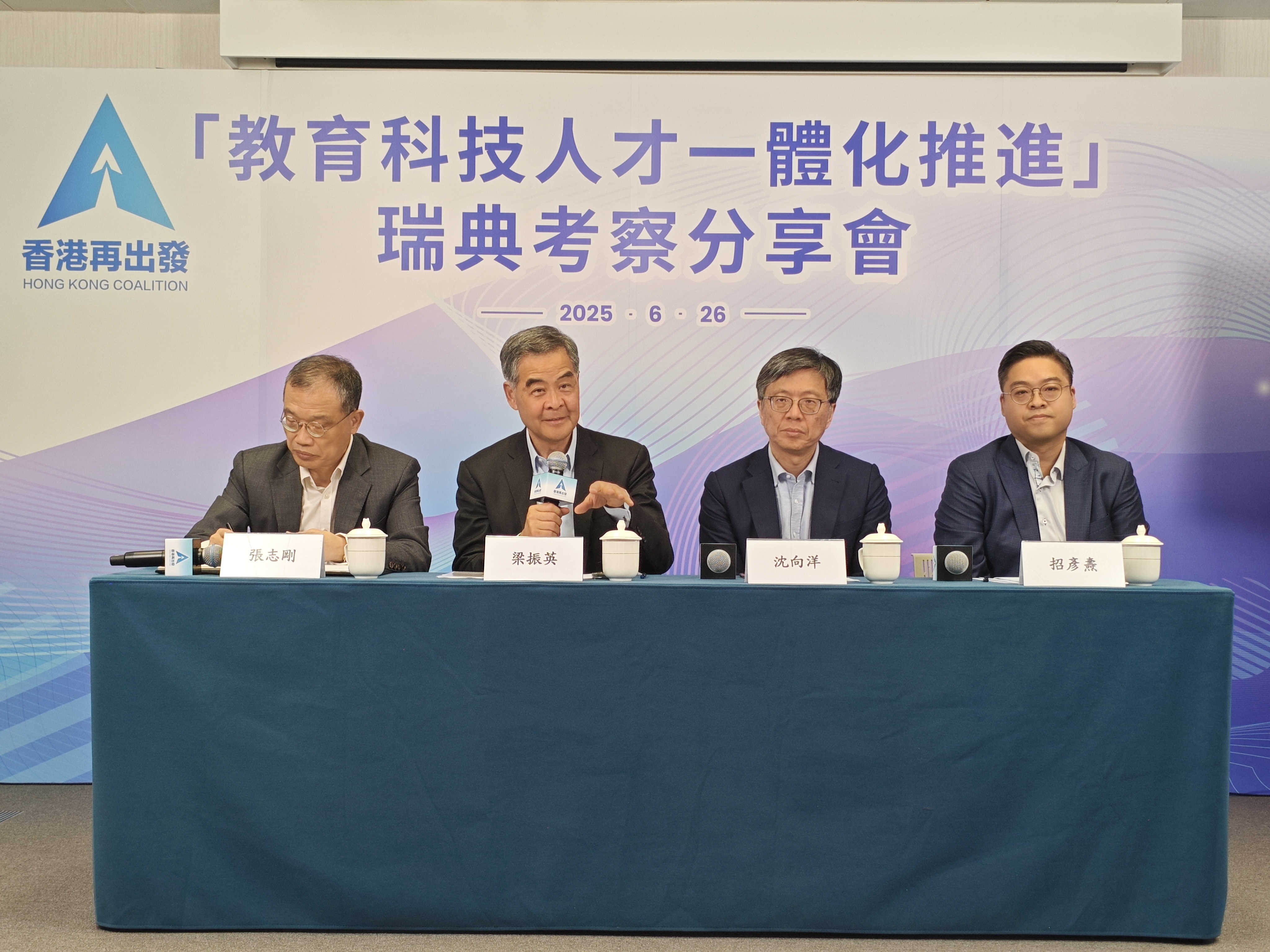 大公文匯全媒體報道,香港再出發大聯盟本月組團考察瑞典,了解當地先進的教育、科技和產業高度融合的發展經驗和成就,並於今日(26日)舉行以「教育科技人才一體化推進」為名的瑞典考察分享會。全國政協副主席、香港再出發大聯盟總召集人梁振英及考察團成員一同分享瑞典模式,探討香港教育、科技、人才一體化發展之路。