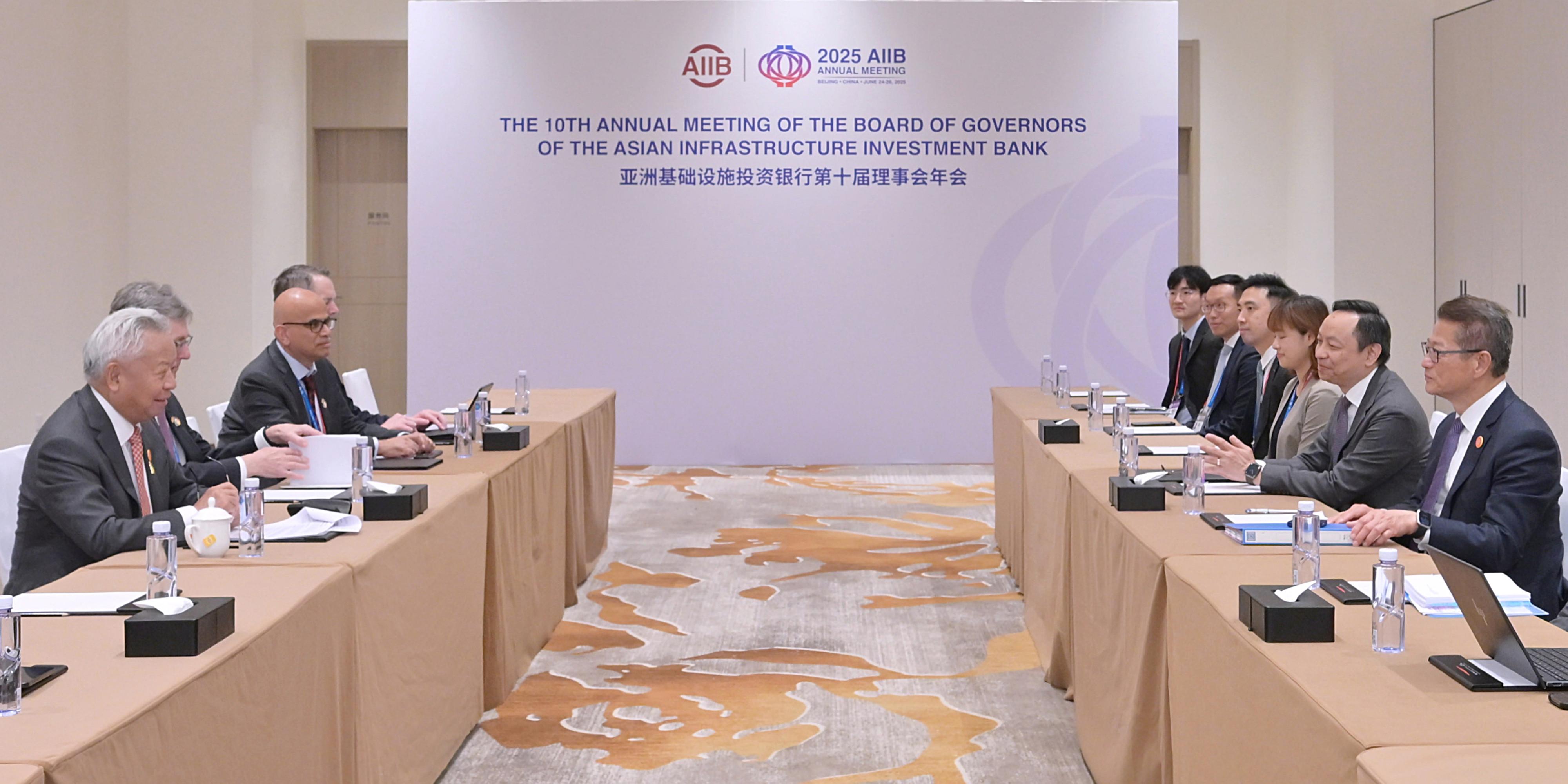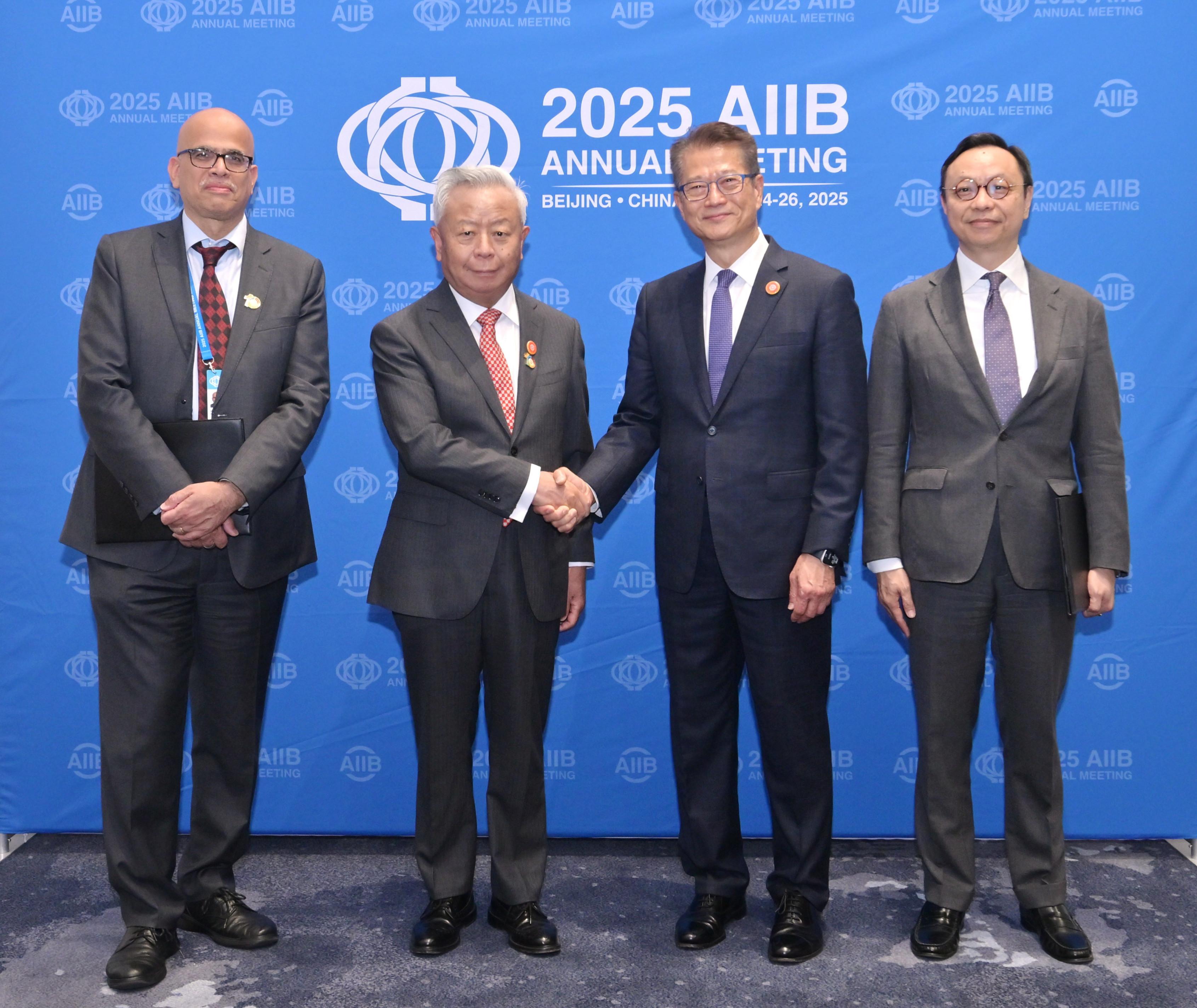 大公文匯全媒體報道,財政司司長陳茂波今日(26日)出席亞投行第十屆理事會年會,並分別與財政部部長藍佛安和亞投行行長金立群會面。