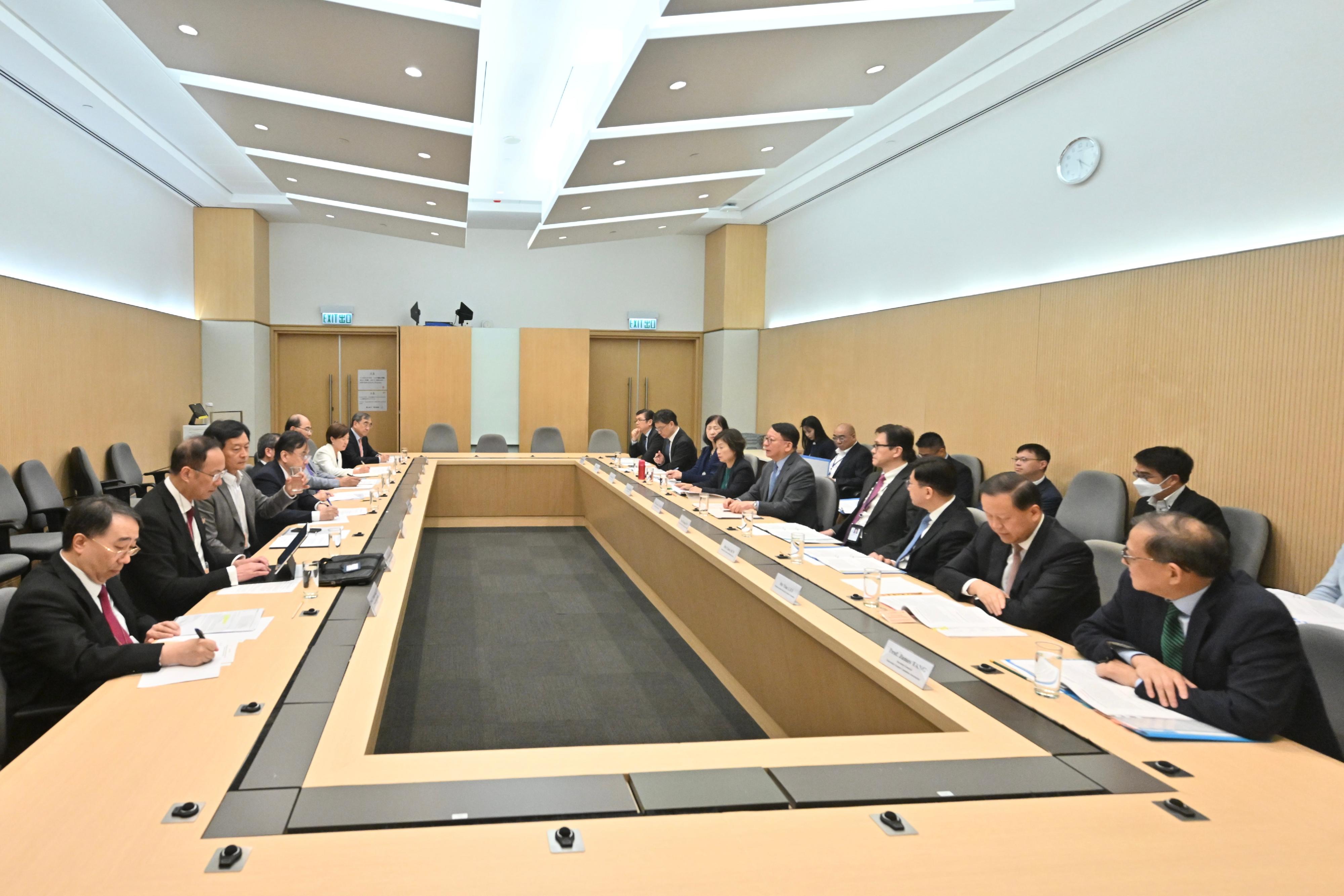 由政務司司長陳國基領導的教育、科技和人才委員會(委員會)今日(六月二十六日)與香港八所大學教育資助委員會(教資會)資助大學的校長會面,就推進教育、科技和人才一體化融合發展的工作交換意見。教育局局長蔡若蓮博士、創新科技及工業局局長孫東教授,以及勞工及福利局局長孫玉菡三位委員會成員亦一同出席。