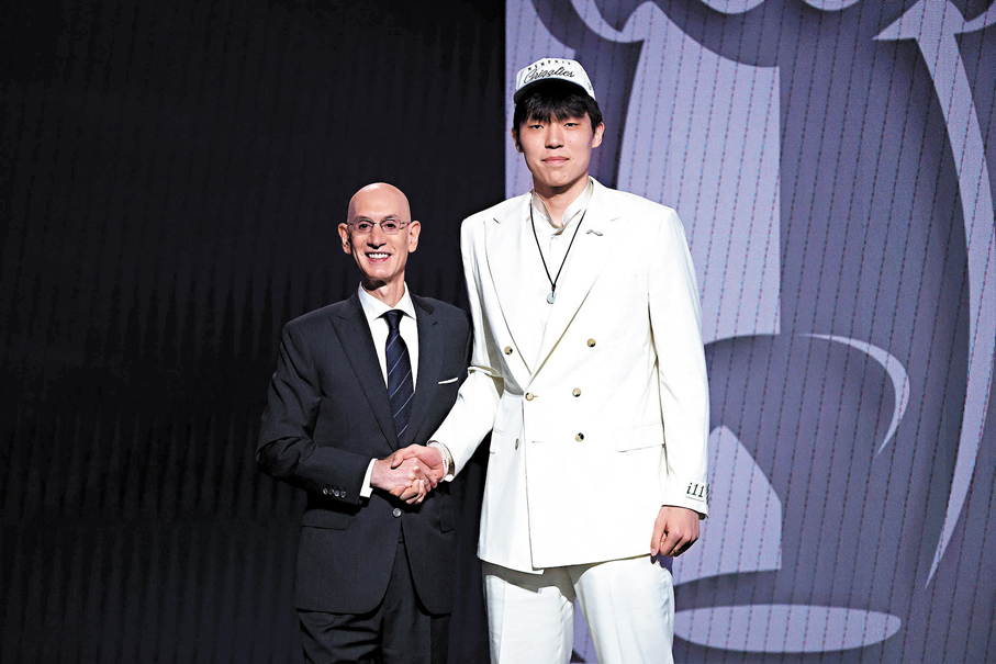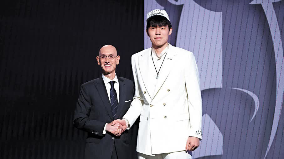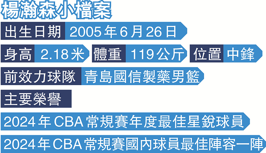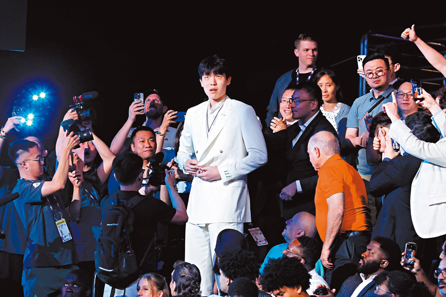 (香港文匯報 記者 蘇雨潤)當聚光燈驟然聚焦在楊瀚森身上,這位年僅20歲的中國小將眼中流露出難掩的驚喜和激動。在2025年NBA選秀大會上,拓荒者先於鷹隊與籃網「截胡」,以首輪第16位將楊瀚森攬入麾下。時隔近20年,NBA首輪選秀再現中國人的身影,相較於外界此前預測的首輪末段、次輪前段被選中,楊瀚森的最終順位無疑是一份驚喜,他自己也用「挺意外的,也非常激動,我的腿現在都有點抖」來形容。自此,楊瀚森成為第九位登上NBA舞台的中國球員,亦是繼姚明、易建聯之後第三位被首輪選中的中國球員。