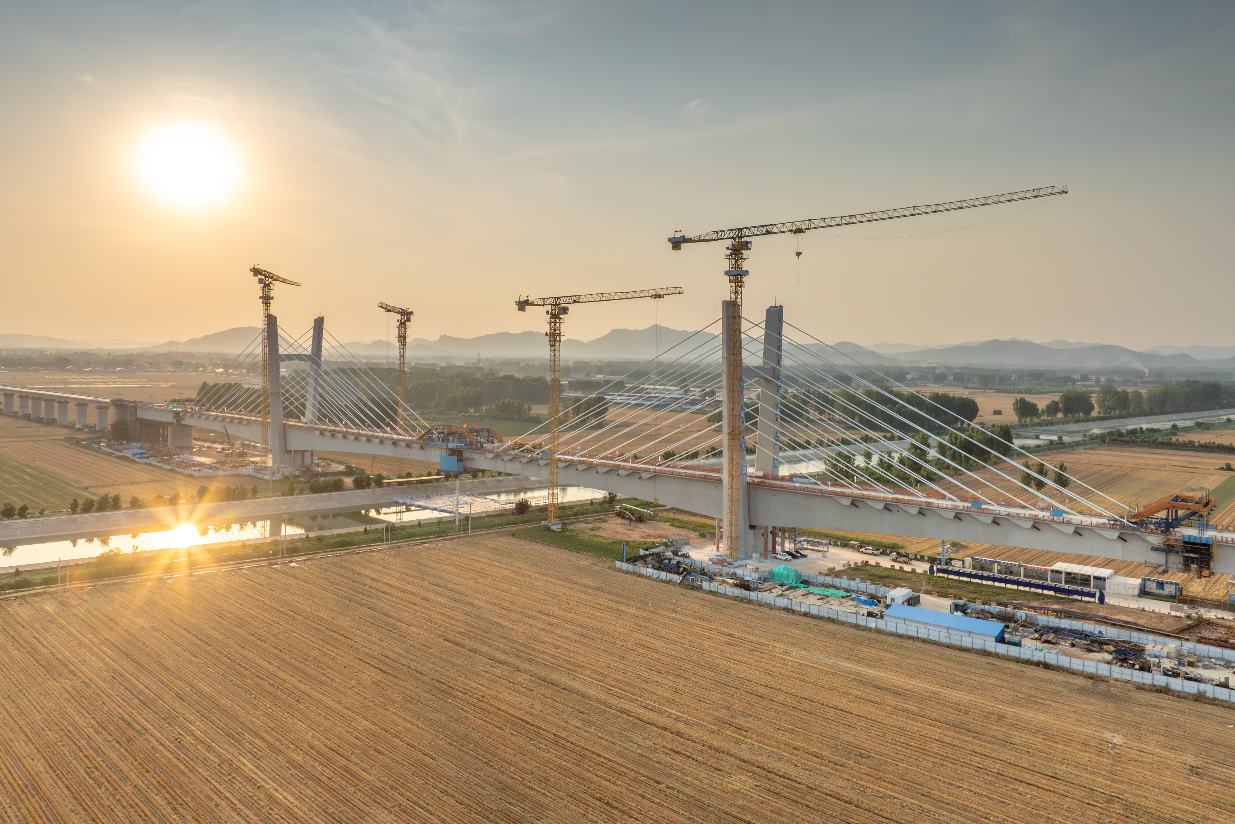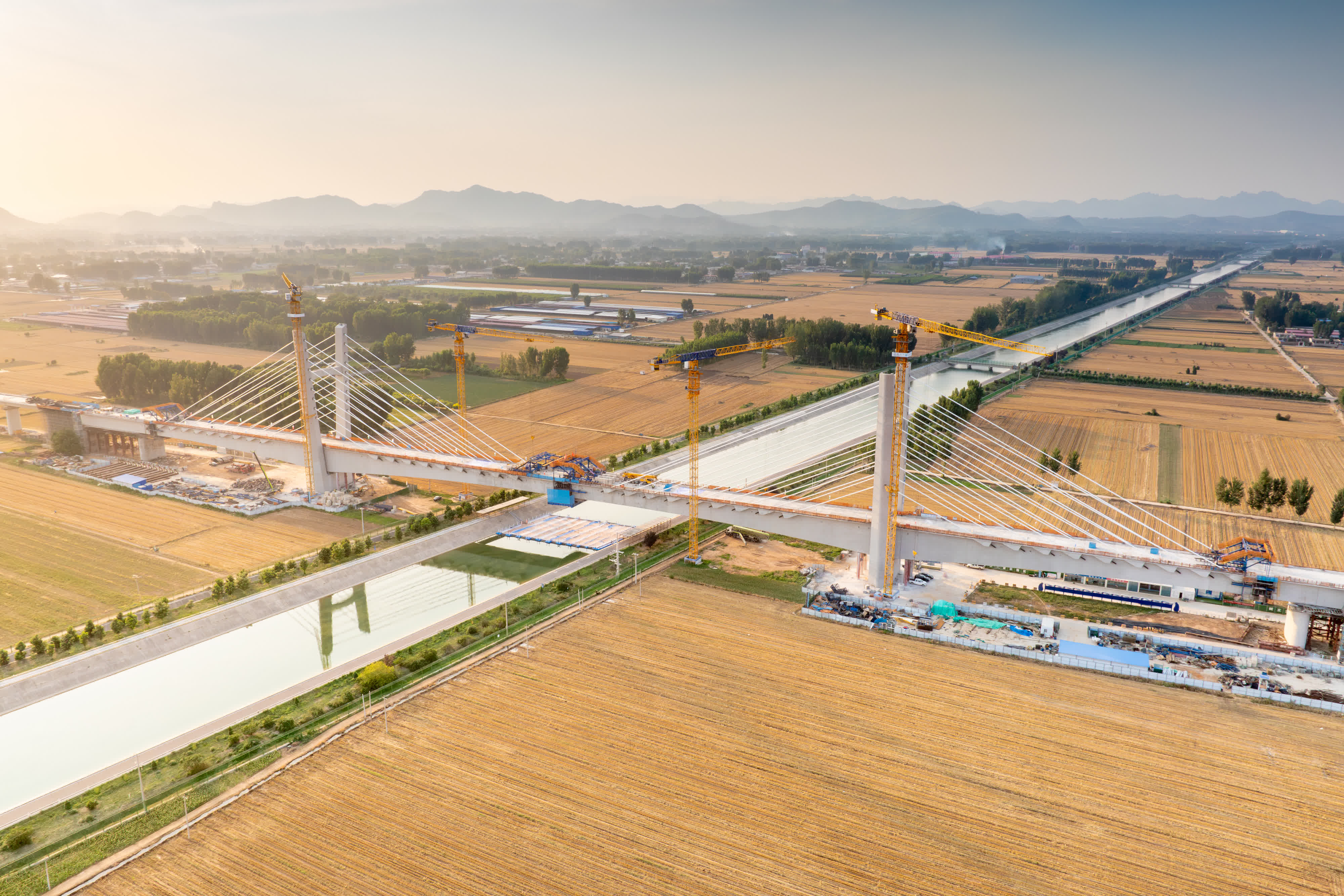 本次實現合龍的雄忻高鐵跨南水北調矮塔斜拉橋爲全綫重要的控制性工程,大橋採用雙塔雙索面預應力混凝土矮塔斜拉橋設計,全長526.7米、塔高66.5米。