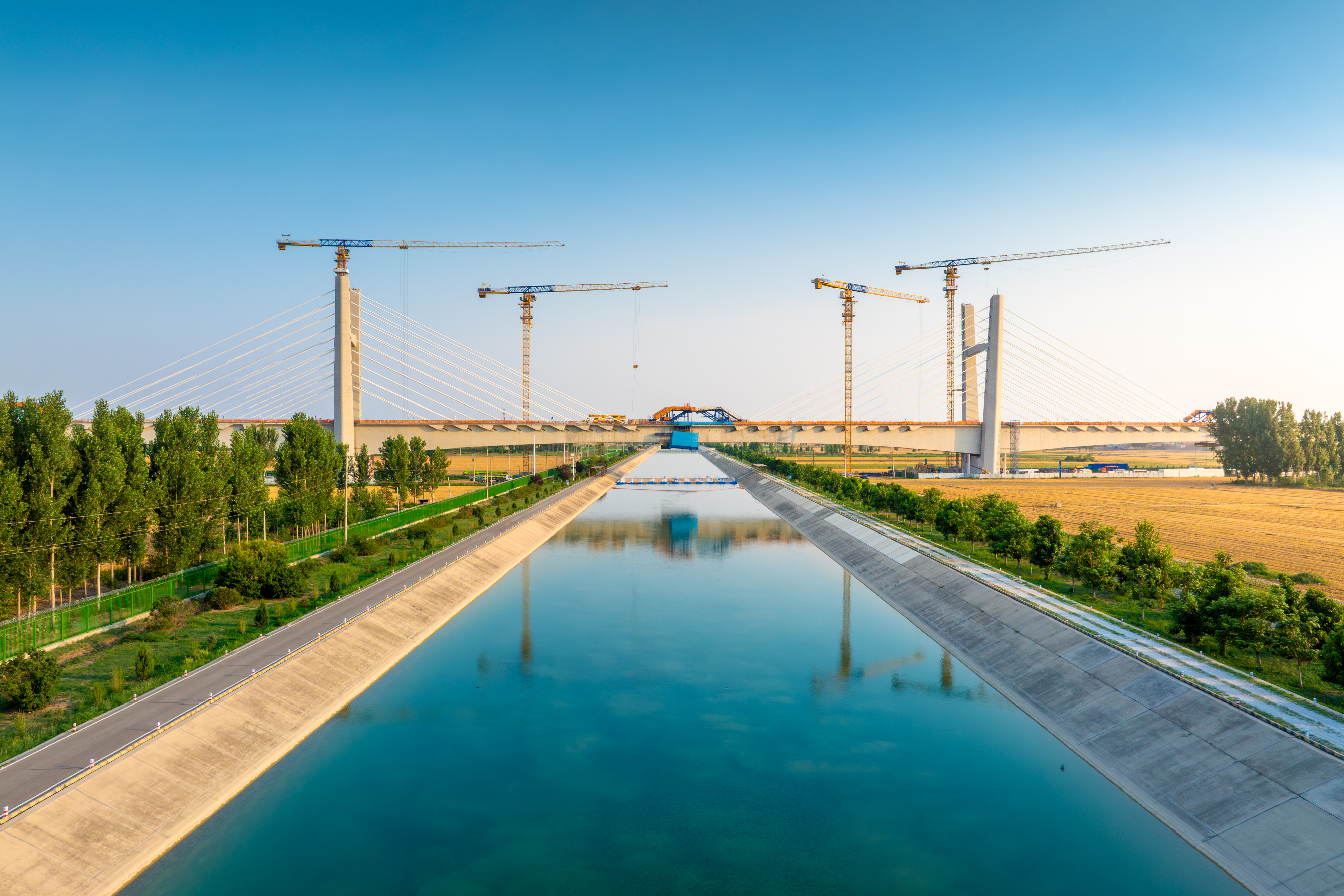 由於該大橋跨越了南水北調幹渠一級水源保護區,環保要求極爲嚴格,因此從設計階段,這座大橋就採用了主跨爲225米的矮塔斜拉橋,一跨越過南水北調幹渠及兩側的水源保護區。同時,中交二航局建設團隊還通過設置掛籃兜底和水面浮橋來消除物品掉落隱患,實現對南水北調幹渠全方位、無死角的保護。