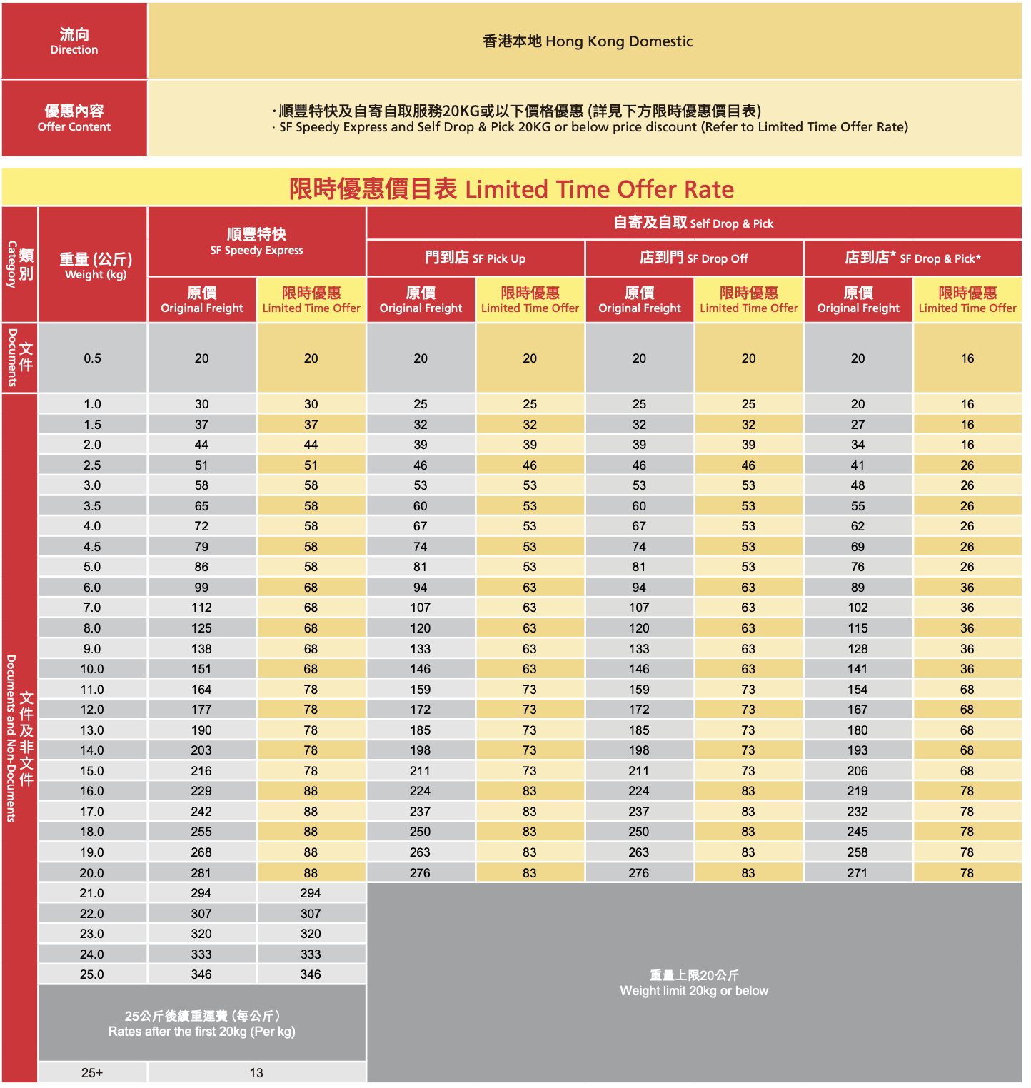 更多順豐國際港澳地區特惠收費詳情可瀏覽網頁。