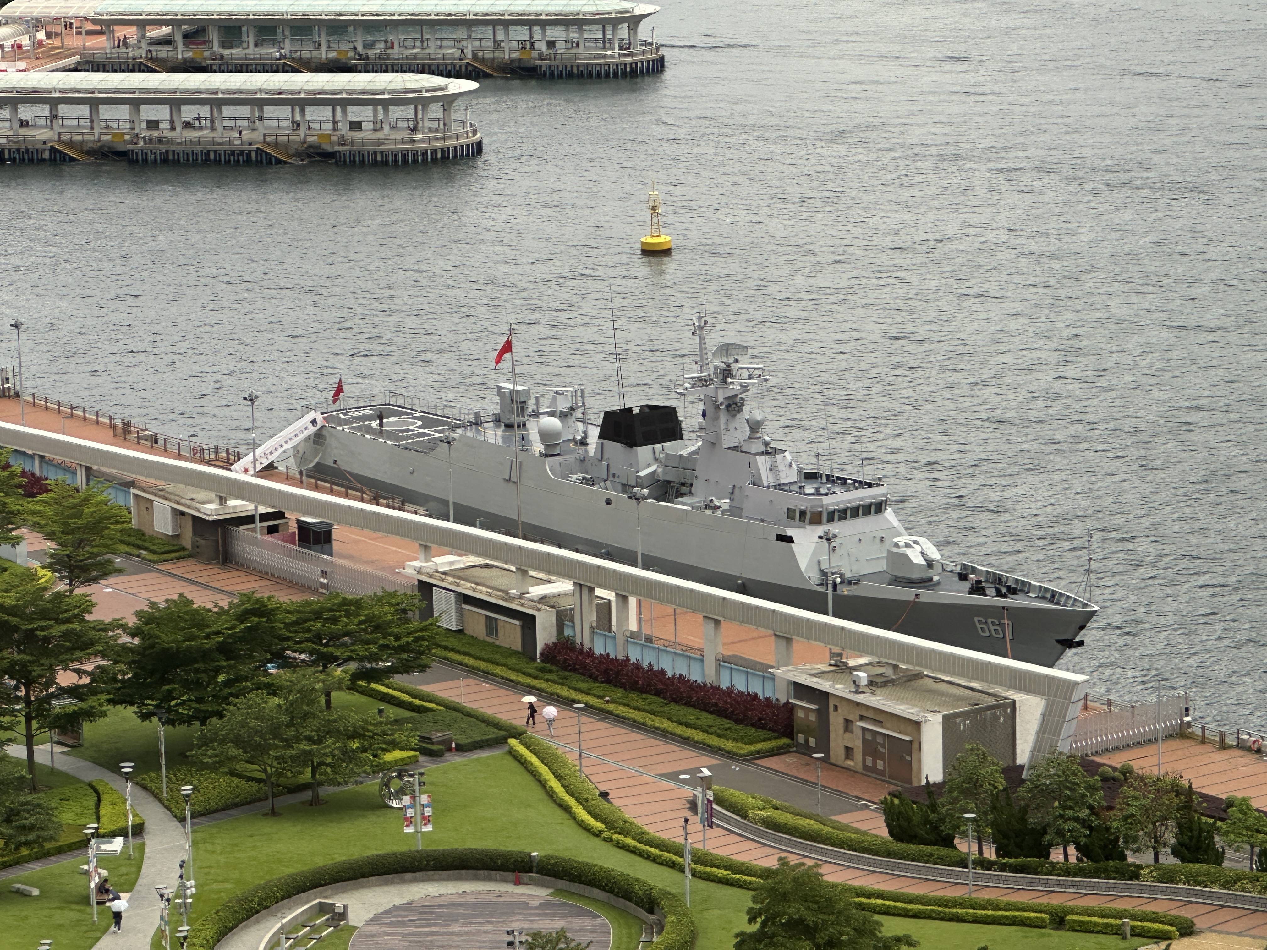 大公文匯全媒體報道,今早(27日),記者在中環看到,荊門艦(舷號667)停泊在中區軍用碼頭。
