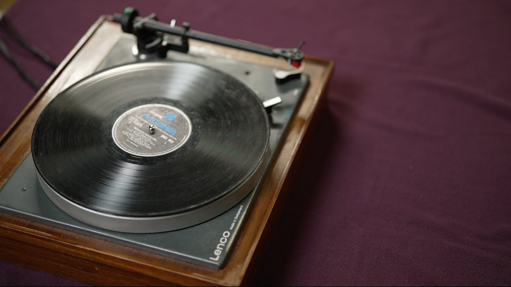 來自鐘錶大國瑞士的唱盤 Lenco B52,為 60 年代中期製品,支援四種轉速(16、33、45、78 rpm),只需換上配備特殊 78 rpm 唱針的唱頭,即可播放各式黑膠唱片,外型亦充滿濃厚的復古韻味。