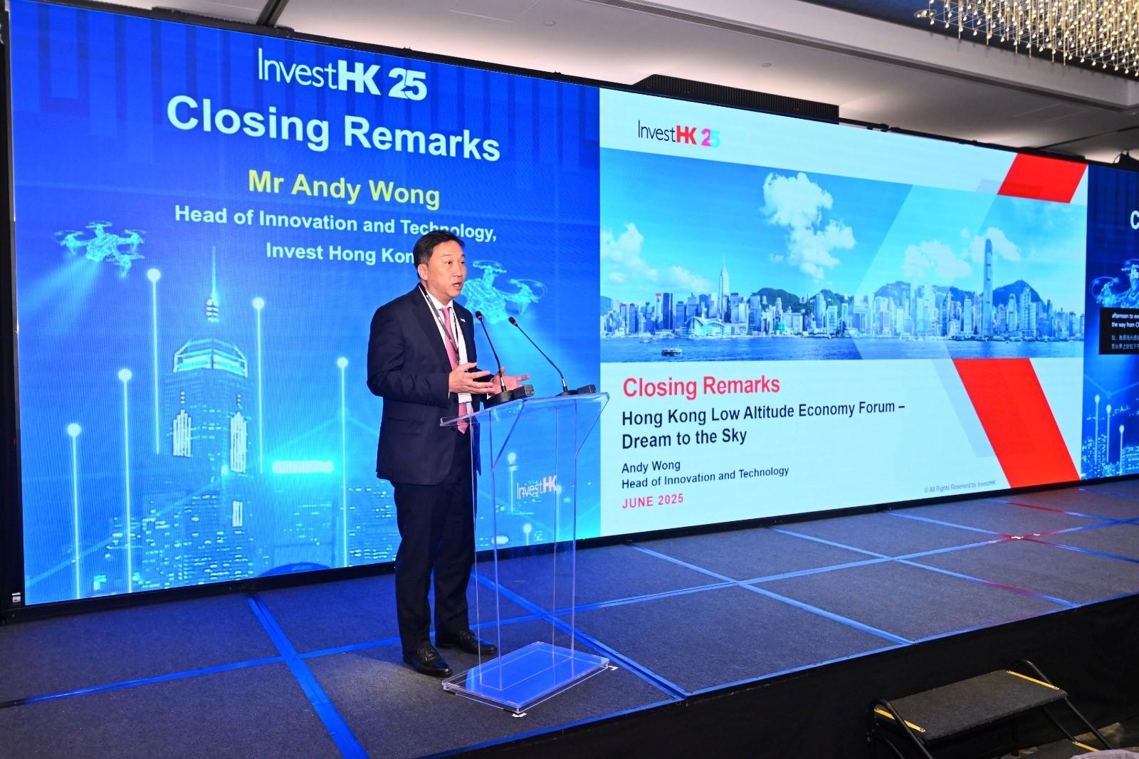 投資推廣署今日(六月二十七日)圓滿舉辦首屆「香港低空經濟論壇」,活動以「科創領航.築夢天際」為主題,匯聚來自政府、產業、學術及科研界別的領袖,聚焦低空經濟的政策方向、技術發展與未來應用,並深入探討監管安排、跨境協作及基建配套等議題,展示香港在推動創科轉化與構建新型產業生態方面的進展,吸引逾250位本地及海外業界持份者參與。