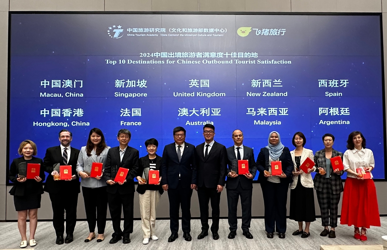 根據中國旅遊研究院對內地出境旅遊者的滿意度監測,2023年澳門排名第三,2024年躍升至第一位,尤其在「娛樂休閒」及「當地居民態度」方面均獲得高度評價。第二至第十位依次是新加坡、英國、新西蘭、西班牙、中國香港、法國、澳大利亞、馬來西亞及阿根廷。