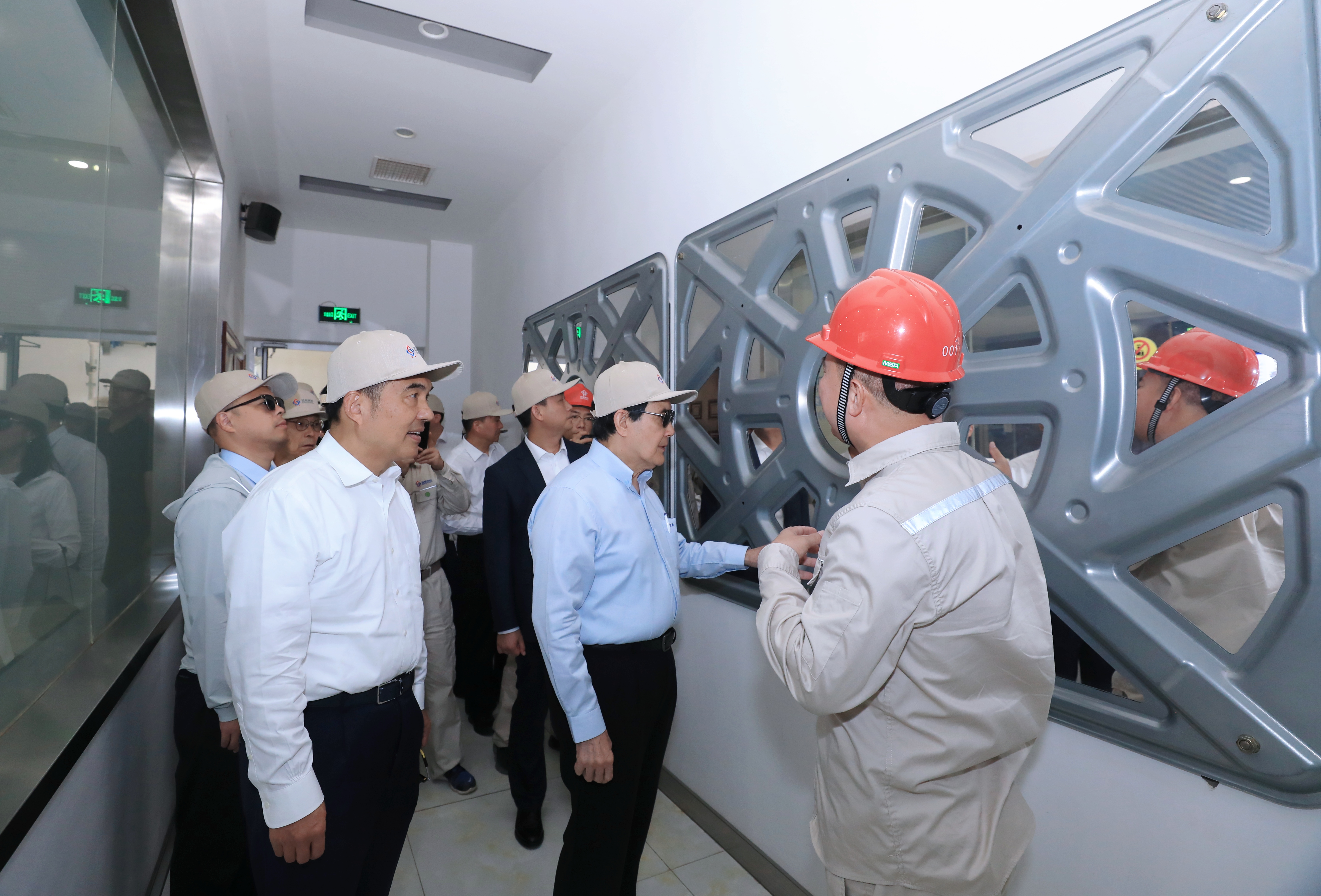 馬英九一行對首航高科的先進技術和綠色理念表現出濃厚的興趣。他認真聆聽講解,手中筆記本不時記錄下關鍵信息,臉上洋溢着對新能源技術的讚賞。在參觀過程中,馬英九頻頻點頭,頻頻提問,詳細詢問了清潔能源在大陸的推廣應用情況、政策支持力度以及未來發展規劃。