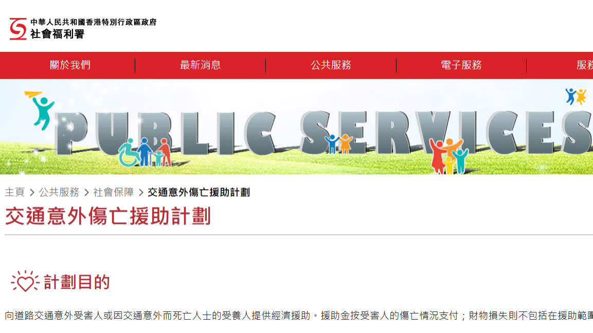 大公文匯全媒體報道,社會福利署今日(27日)宣布,由明日(28日)起推出交通意外傷亡援助計劃的新安排,將計劃的「受傷補助」和「臨時生活補助」合併為「體恤補助」。