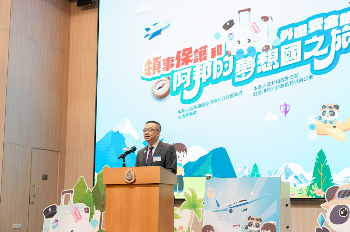入境處處長郭俊峯在發布會致辭時表示,領事保護向來是港人外遊時最堅實的後盾。在公署及國家駐外使領館的全力支援下,入境處的「協助在外香港居民小組」(小組)一直致力為在境外遇事的香港居民提供切實可行的協助。同時,入境處非常重視外遊安全的宣傳工作,過往不時與公署合辦各類宣傳活動,以提升市民外遊時的安全意識,並加深他們對國家領事保護及小組工作的了解。