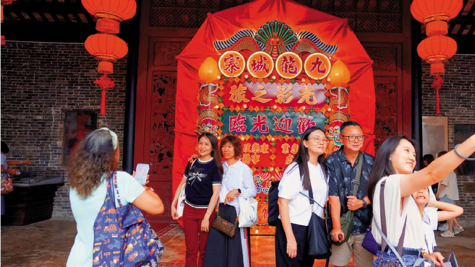 在九龍城的九龍寨城公園,5月尾以來,搖身變為打卡熱點,就算在非周末的日子,到訪的海內外遊客與本地市民絡繹不絕,他們為參觀在這裏展出的《九龍城寨光影之旅》電影場景展。「九龍城寨的場景,經常出現在影視和遊戲作品中,它的神秘感,吸引我前來打卡」,來自上海的梁先生表示,正是聽聞電影場景展在城寨原址開放後,特意將這裏列為訪港行程之一。