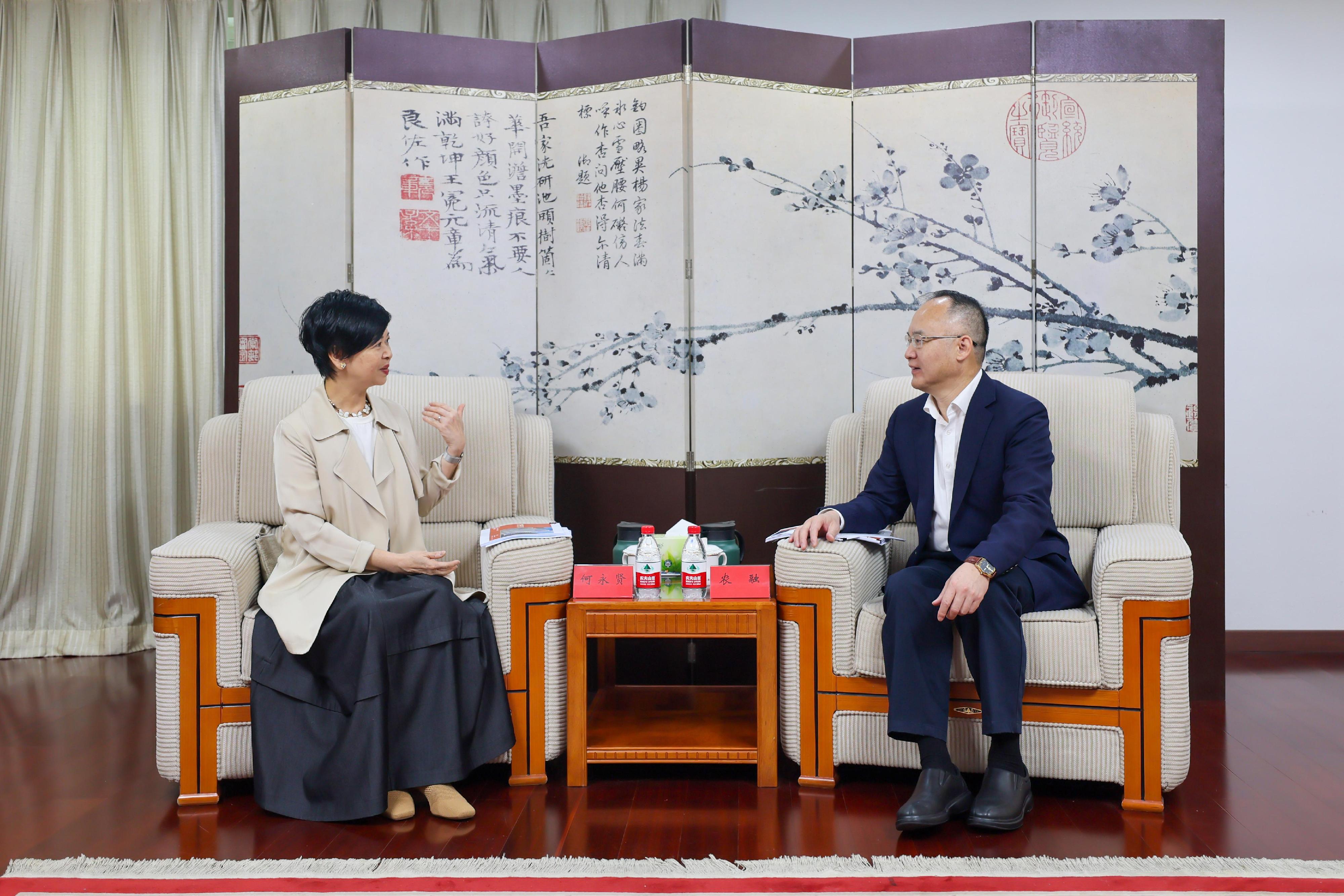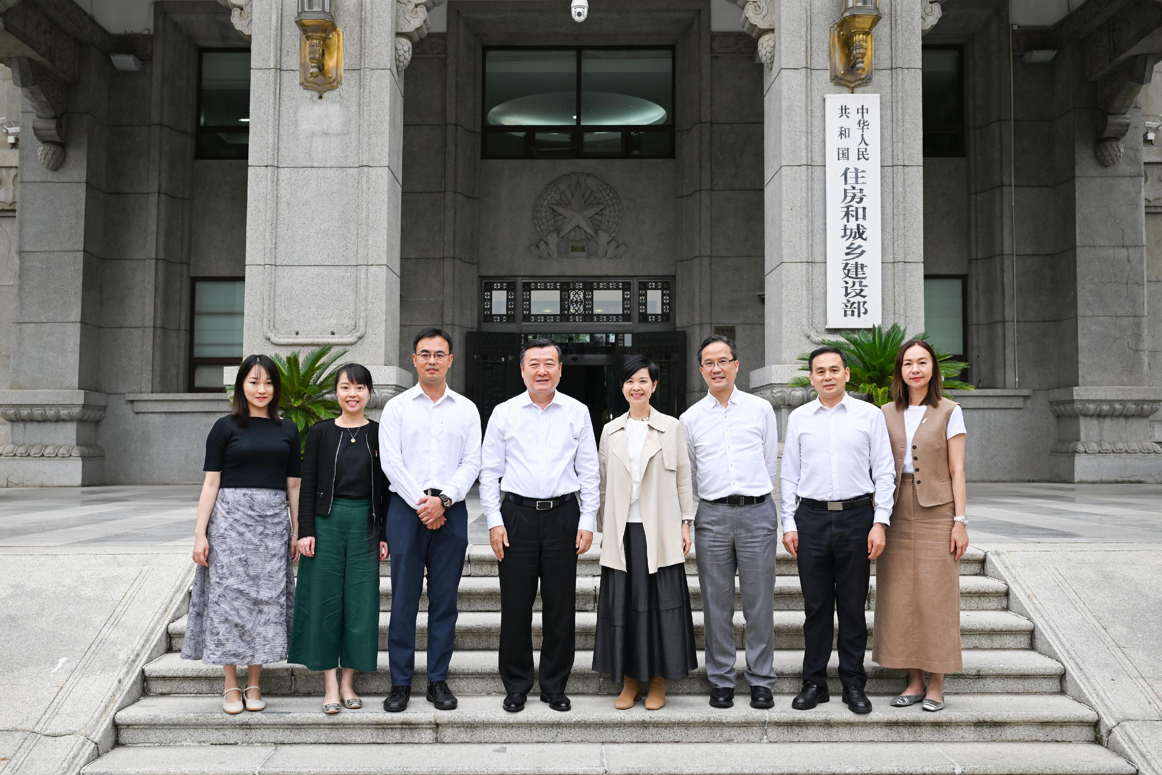 隨後,她亦拜訪了國家住房和城鄉建設部部長倪虹,介紹房屋局的工作以及香港引入內地先進建築科技方面的實際應用情況和成果。她表示,今年房屋局透過一系列活動及外訪,包括11月在香港舉行的國際性研討會,向世界展示內地和香港建築科技的最新發展,充分發揮香港「內聯外通」的獨特優勢,擔當「超級聯繫人」和「超級增值人」的角色,希望到時世界各地的朋友都可以參加年底由香港主辦的研討會。