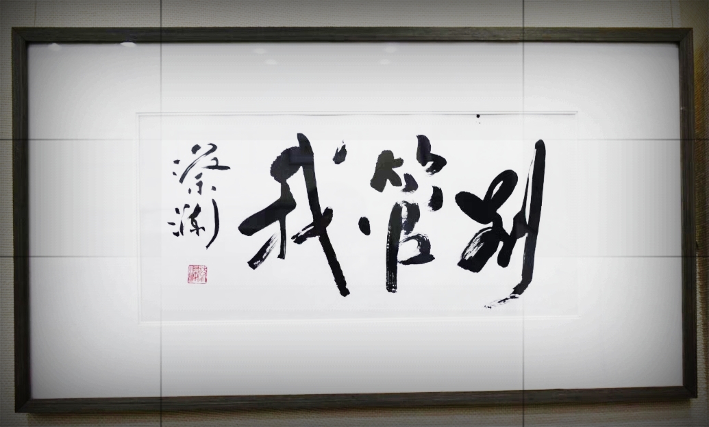 蔡先生的書法極有趣,他講述了幾幅字的創作由來。他特別提到書法執筆的學問,讓人深受啟發。在他所有作品中,筆者格外喜歡這件《別管我》。人生在世,束縛太多。情也,事也,人也,利也,萬般執念皆作繭,不要管我方風流。