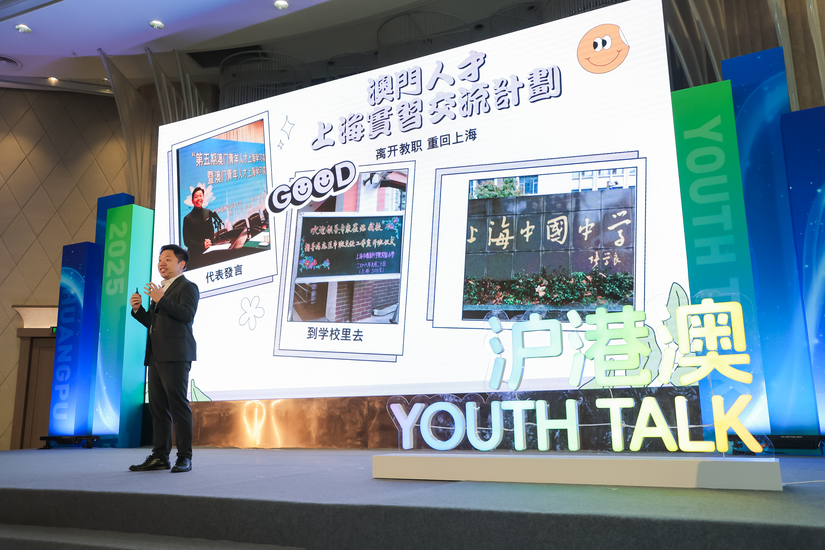 澳門青年代表、上海高校澳門學生聯合會會長、君達運輸貿易行總經理陳浩楠在演講中的比喻引發滿堂掌聲:「澳門如慈母呵護我成長,上海則像嚴父教會我生存。有人以為金子會發光,其實金子只會反光——是環境給了我們發亮的機會。」他以上海高校澳門學生聯合會會長身份推動滬澳文化交融:「在區委統戰部支持下,我們讓澳門文化日走出校園,在南京路、日月光向市民講述澳門故事。路雖遠行則將至,事雖難做則必成!」