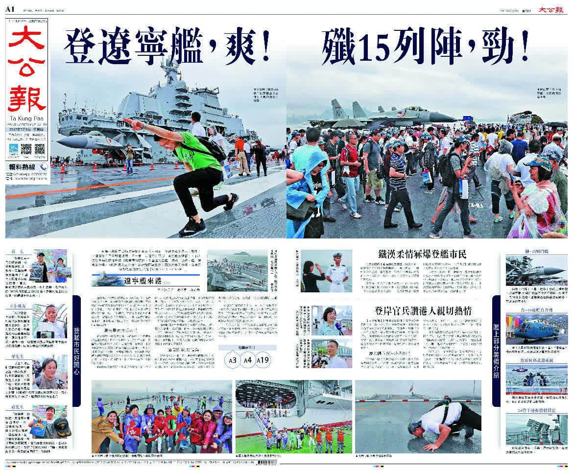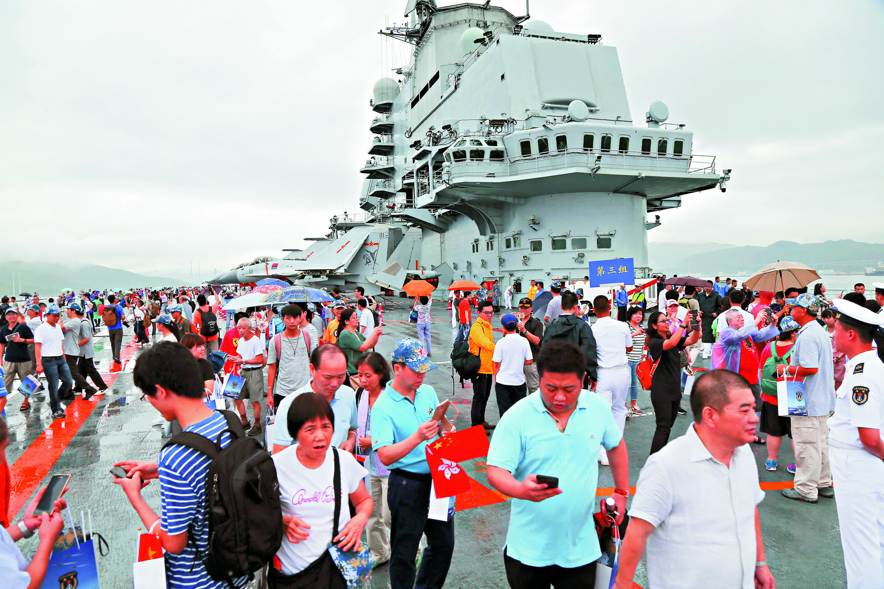 2017年7月,為慶賀香港回歸祖國20周年,遼寧艦航母編隊訪問香港,共接待4000多名香港市民上艦參觀。北京航空航天大學教授、戰略問題研究中心主任王湘穗向《大公報》表示,首艘國產航母訪港,體現出中國的自信和開放。