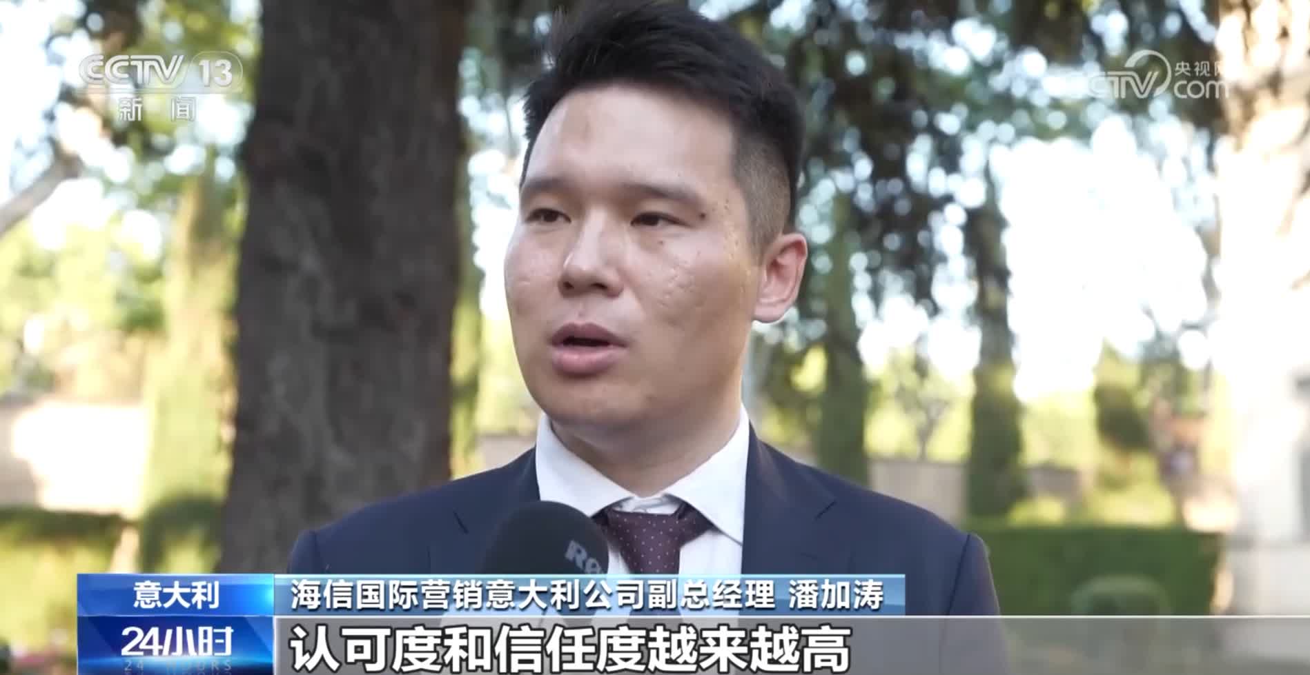 海信國際營銷意大利公司副總經理 潘加濤:意大利消費者對中國品牌的認可度和信任度越來越高,這就是中意兩國關係一個很好的印證。意大利消費者對中國品牌的認可,從最初的低端產品到現在的中高端產品,這樣對中國品牌信任度的加深,也反映了兩國關係更好地融合。