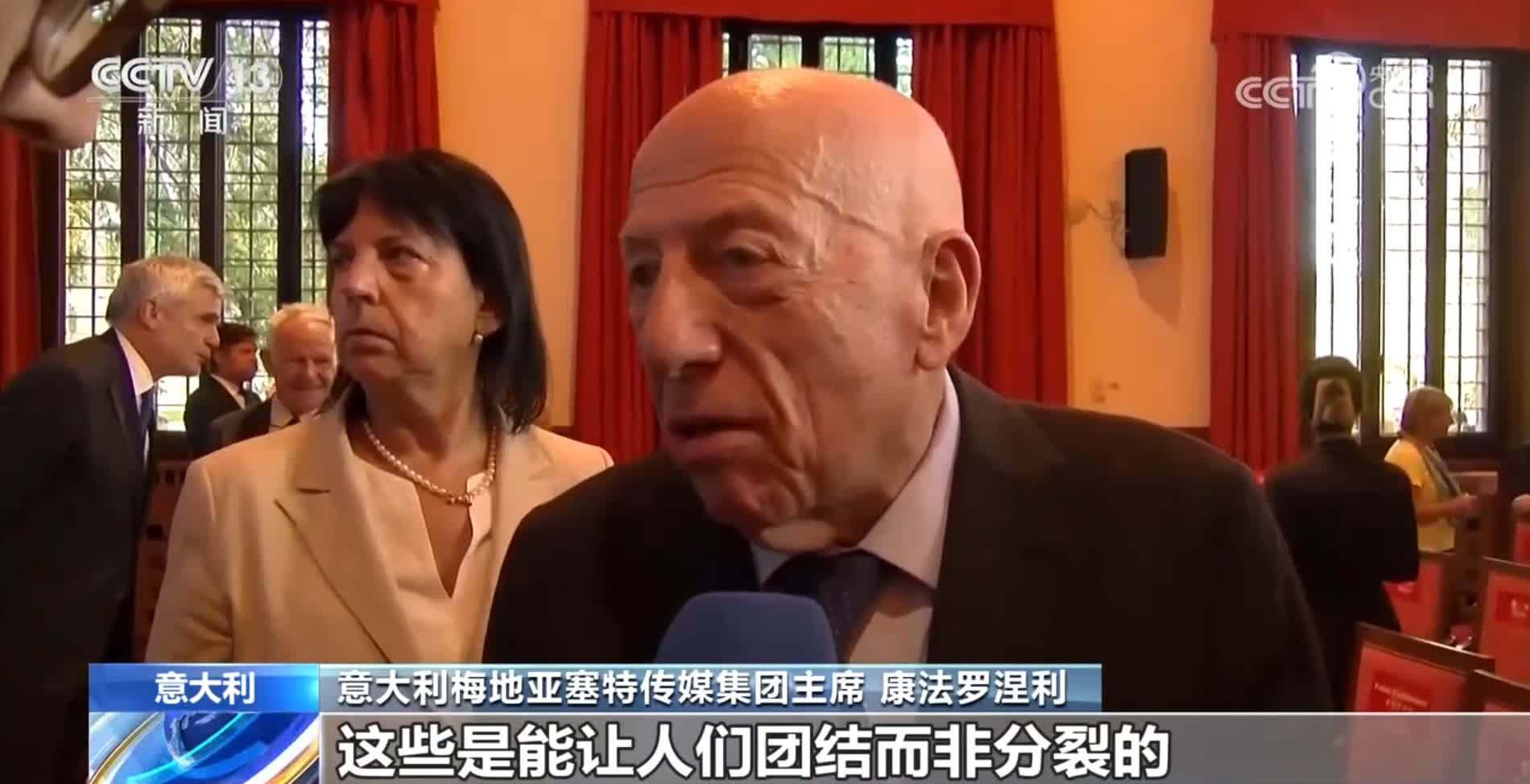 意大利梅地亞塞特傳媒集團主席 康法羅涅利:這是一場重要的活動,在當下這個仍有戰亂的時刻,我們應該追求文化(交流)、追求美好,光影和體育些是能讓人們團結而非分裂的,希望這會有所幫助,也應該是有所幫助的。