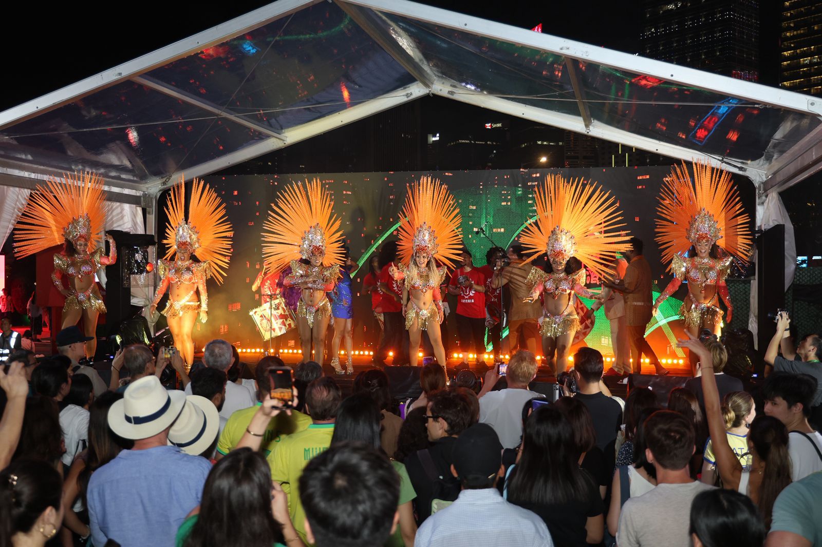 豪華表演陣容由巴西森巴舞女王Andressa領軍近50位巴西頂尖表演者,表演包括頂尖森巴學校UPM的勁歌熱舞、戰舞(Capoeira)結合雷鬼鼓樂(Samba reggae)、騷靈歌后Thulla Melo傾情獻唱、花式足球世界冠軍里卡甸奴(Ricardinho)獻技,以及世界級DJ Jose Hesse以巴薩諾瓦音樂(Bossa nova)混音變奏,連續三晚歌舞競技,呈現讓全城盡享狂歡的熱情澎湃演出,愈夜愈繽紛。此外,巴西主題拍照區人頭湧湧,地道小食與雞尾酒極受歡迎,供不應求。