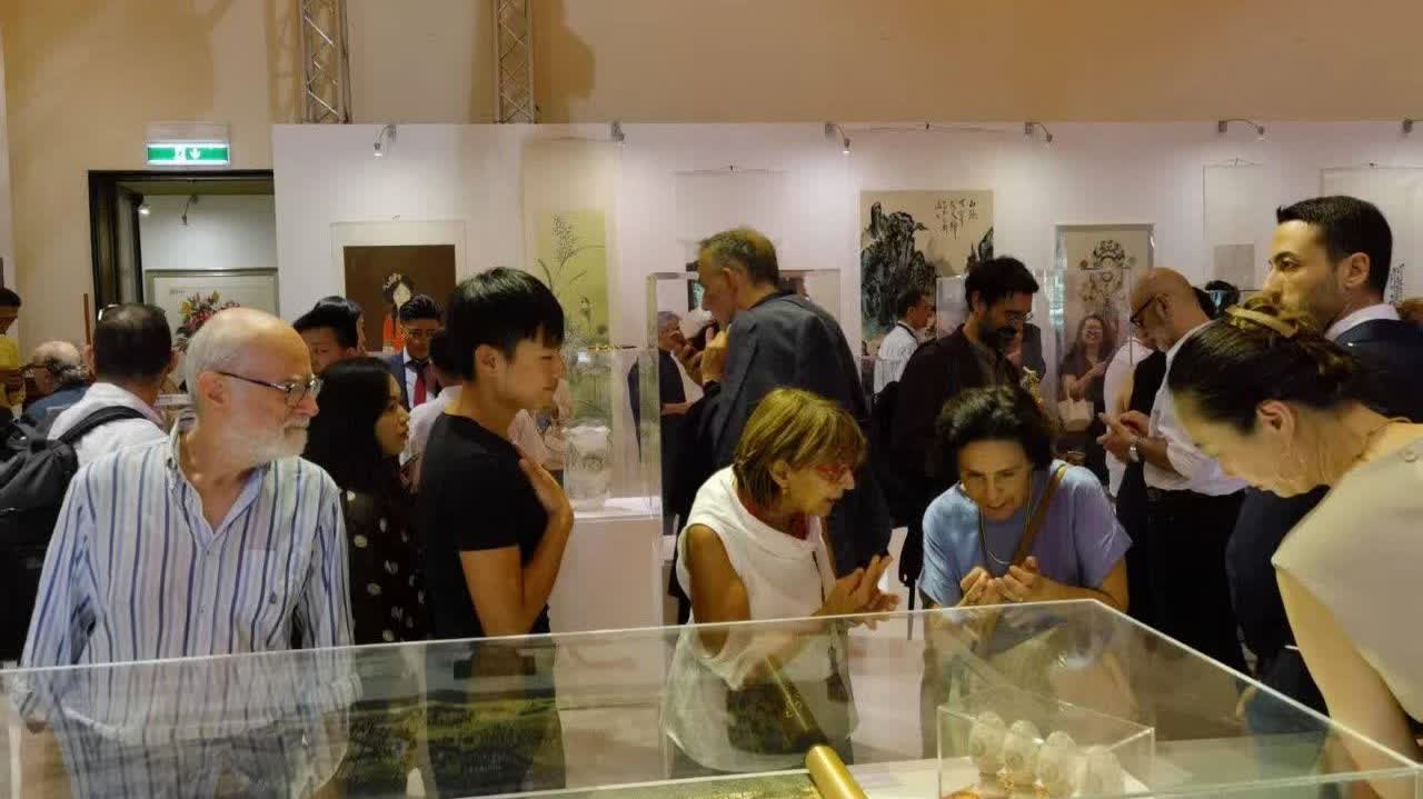 本次特展精心呈現來自中國的書畫、景泰藍、竹刻、刺繡、雲錦、玉雕、剪紙等中華傳統技藝精粹,同時展出來自意大利人類文明博物館的多件古老珍貴的非物質文化遺產作品,以及意大利傳統服飾、陶器、銅器等珍貴文物藝術品。這場跨越千年的文明對話,全景式展現了兩國源遠流長的文化底蘊與互鑒成果,收穫當地民眾高度評價。