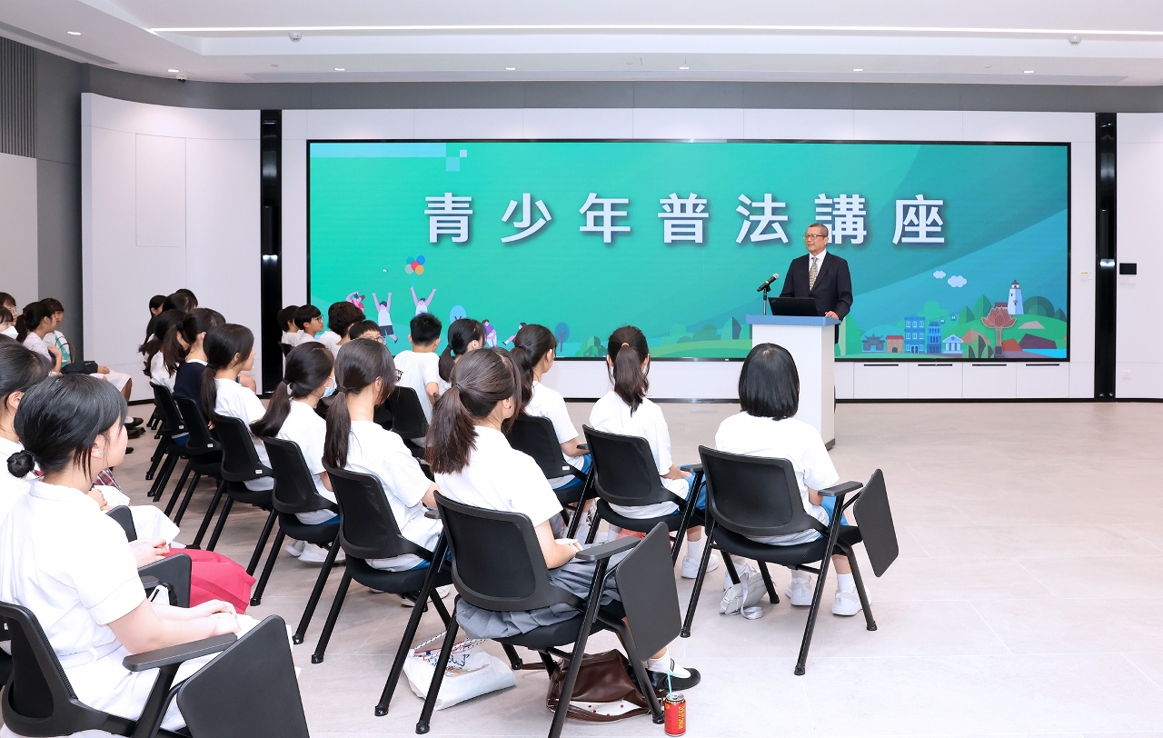 紀念館今日並舉辦青少年普法講座,邀請澳門大學法學院教授駱偉建,為40名來自不同學校的中學生講解憲法和澳門基本法的核心要義,闡釋「一國兩制」在澳門的成功實踐,現場學生積極參與互動討論,氣氛熱烈。