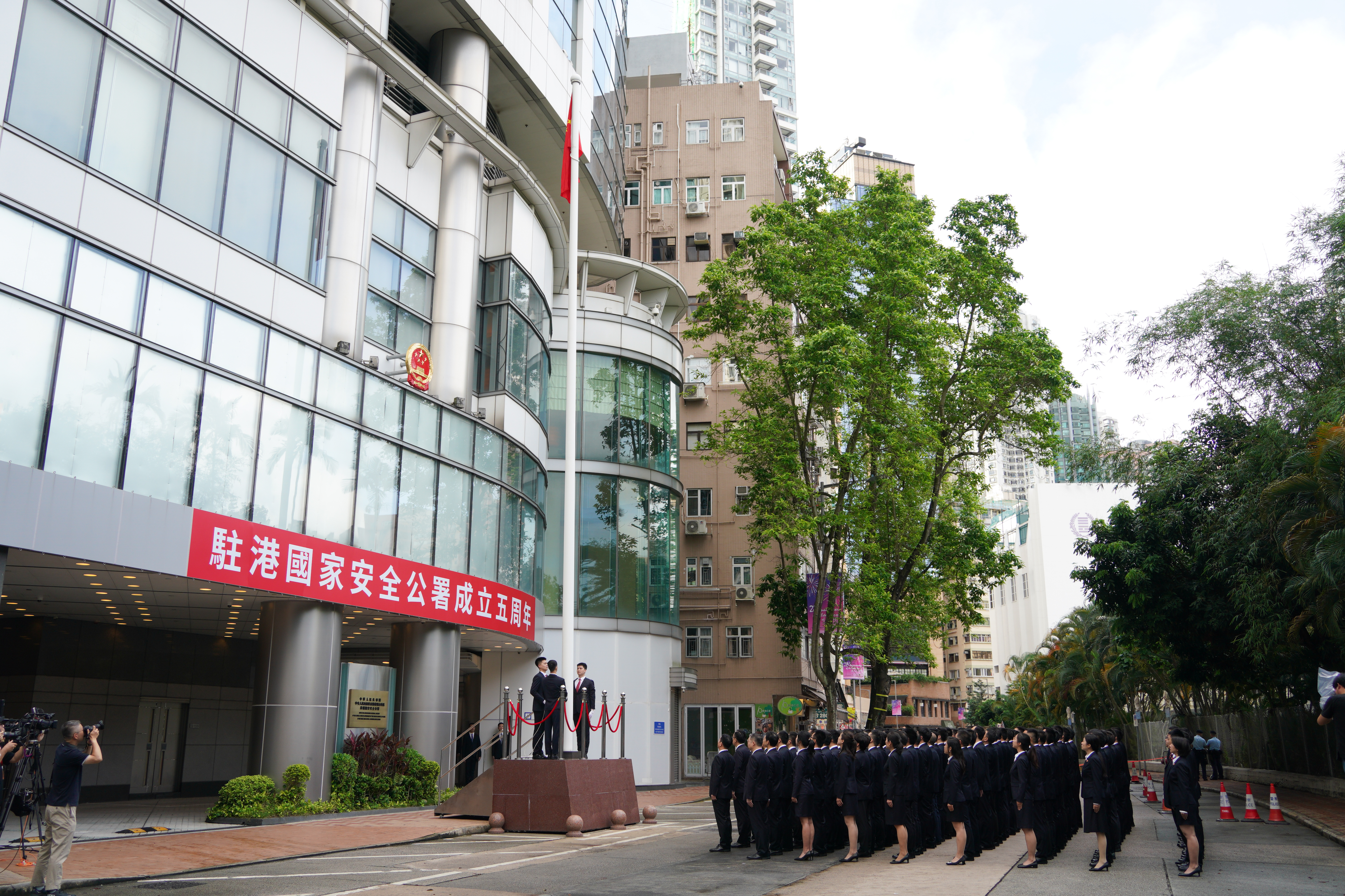 駐港國家安全公署班子成員和幹部代表近150人參加升國旗儀式。香港特區政府政務司司長陳國基、保安局局長鄧炳強、特區國安委秘書長區志光、警務處處長周一鳴、警務處副處長簡啟恩等應邀出席活動。