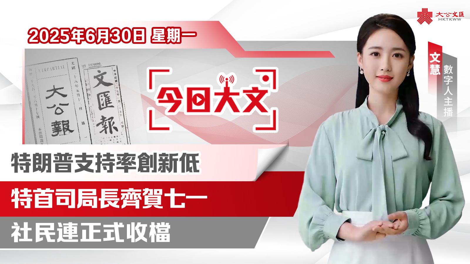 今天是2025年6月30日(星期一),大公文匯網與您速覽報紙看點。