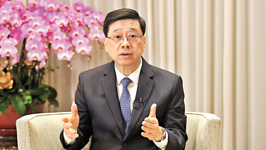 李家超在短片中表示,感謝中央支持,讓香港穩步落實多項惠港政策,並提到香港主動融入國家發展大局,同時深化國際交往合作,他和司局長積極出訪不同地方,開拓更多商機,全方位說好香港故事。