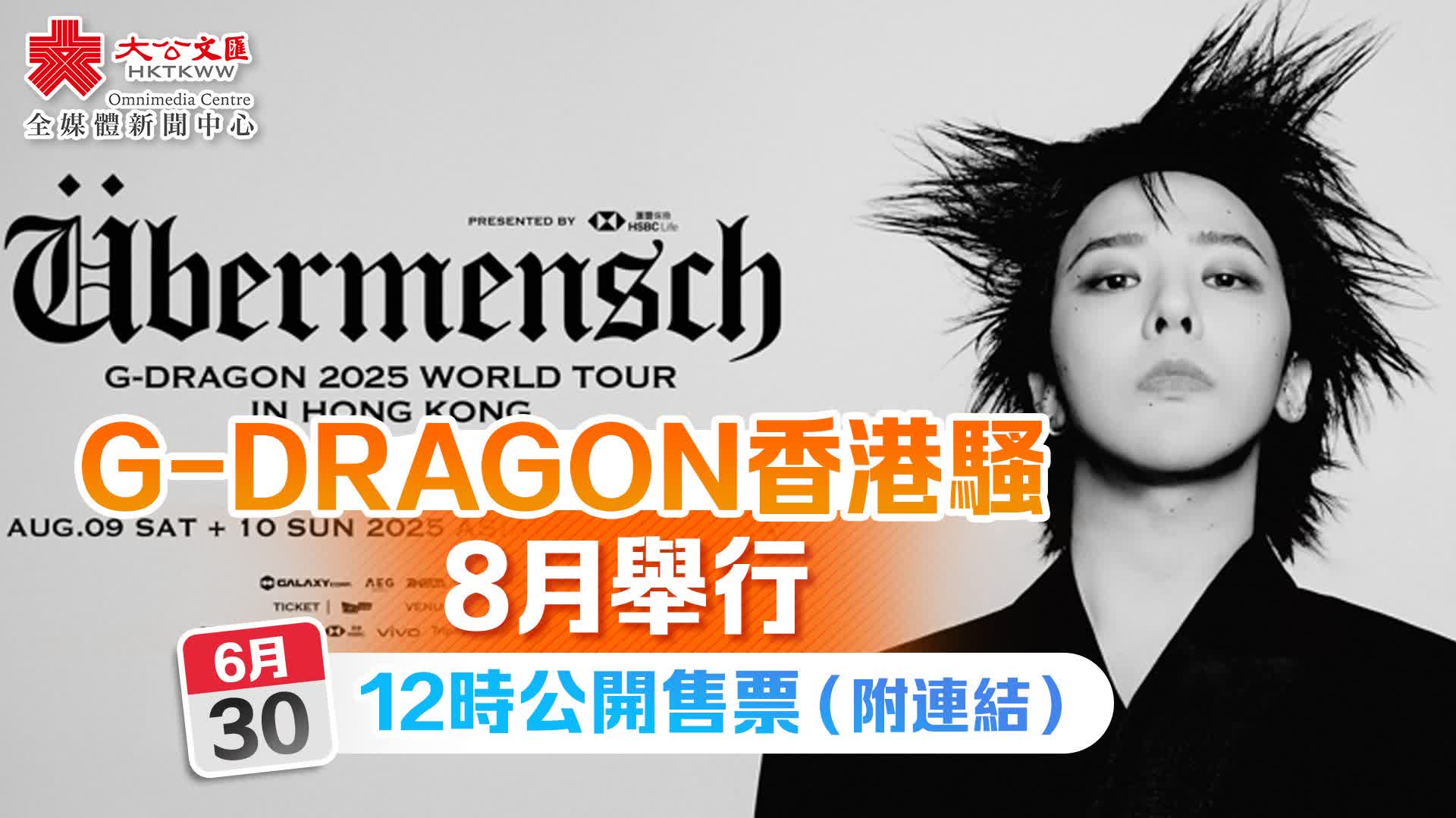 大公文匯全媒體報道,韓流天團BIGBANG的隊長G-Dragon(GD、權志龍),將於8月9至10日(星期六及日)在香港亞洲國際博覽館一連舉辦兩場演唱會。公開發售將於6月30日中午12時起在Cityline進行。