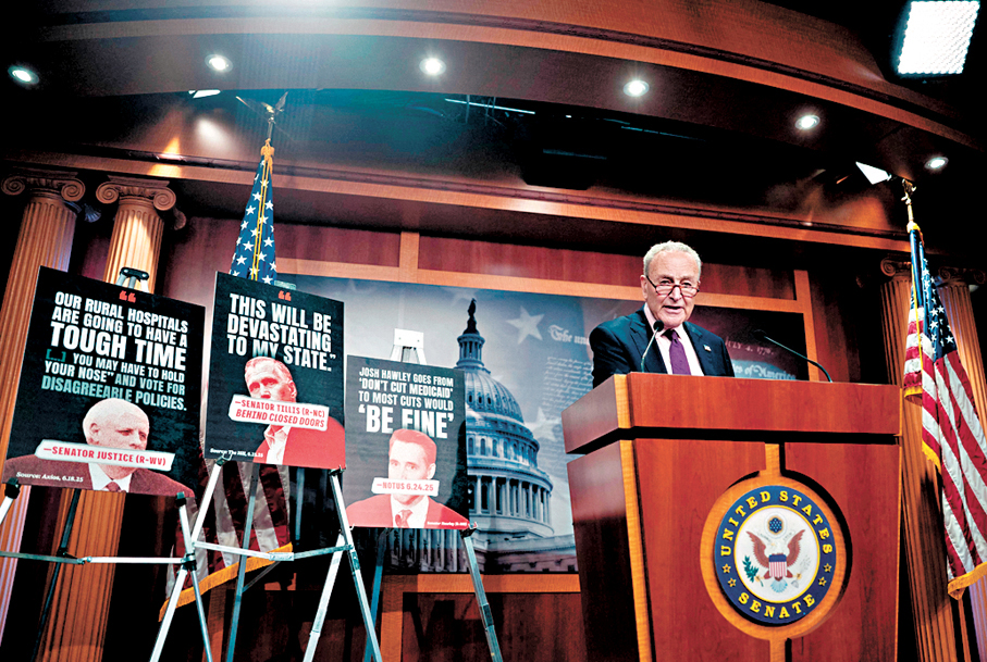 舒默指共和黨人不願告訴美國人法案內容,「民主黨人要強迫他們從頭到尾唸完,如果需要整晚,那我們就一直在這裏。」