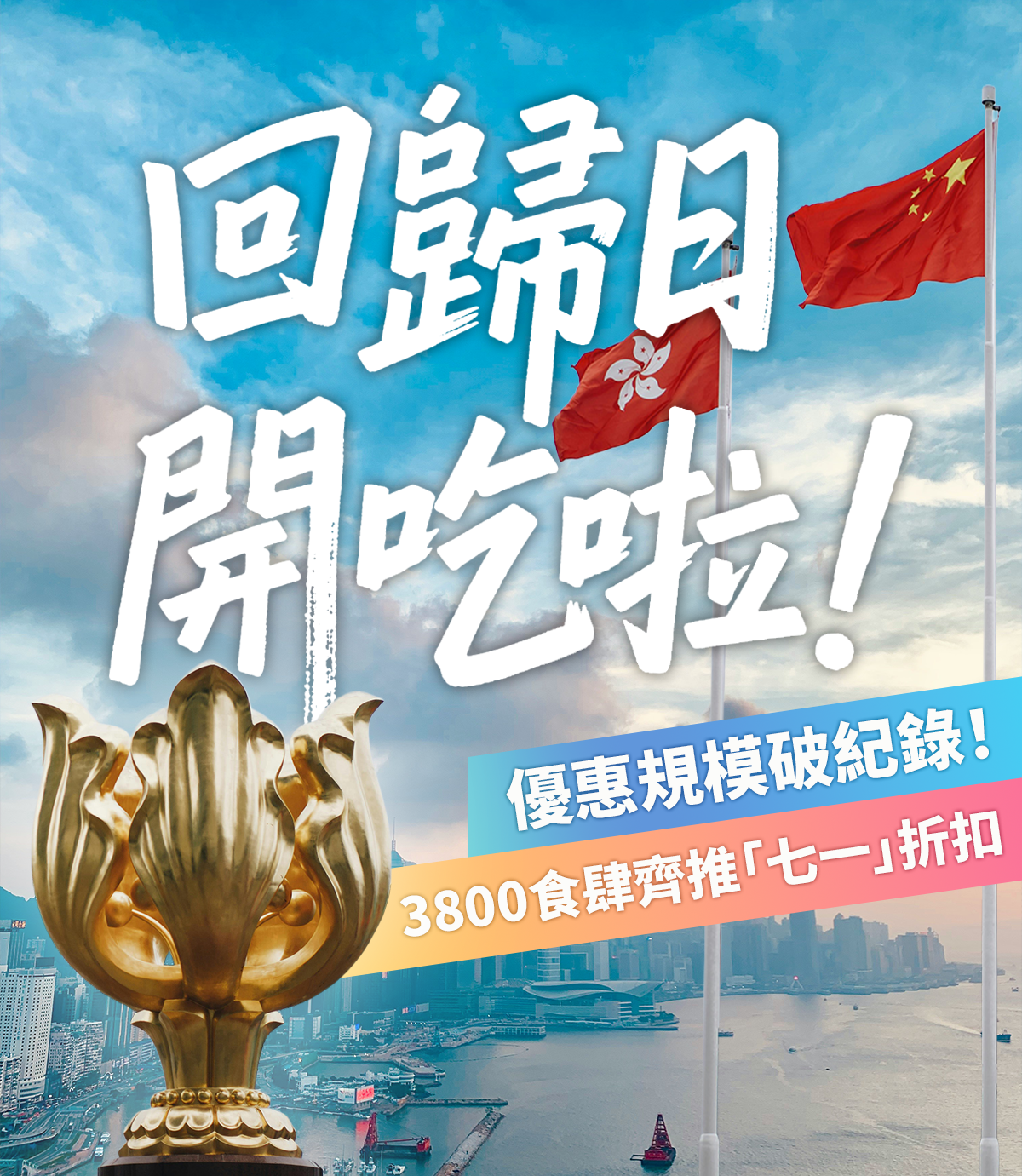 今年是香港回歸28周年,飲食業界連續第三年推出「七一優惠」,參與食肆數量飆升至3,800間(去年僅2,000間),涵蓋連鎖速食、酒店餐廳、麵包店及日式料理等。立法會議員張宇人強勢喊話:「唔喺香港消費係你嘅損失!」