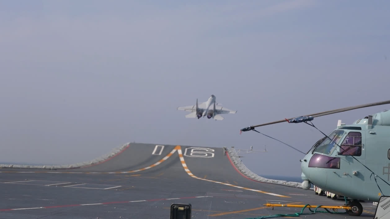 海軍山東艦 曾文輝:此次遠海實戰化訓練,海空域氣候條件複雜,訓練強度大,對保障艦載機起降提出了更高要求。全艦各部位密切協同配合,細化方案預案,嚴把飛行安全觀,確保圓滿完成艦載機訓飛保障任務。