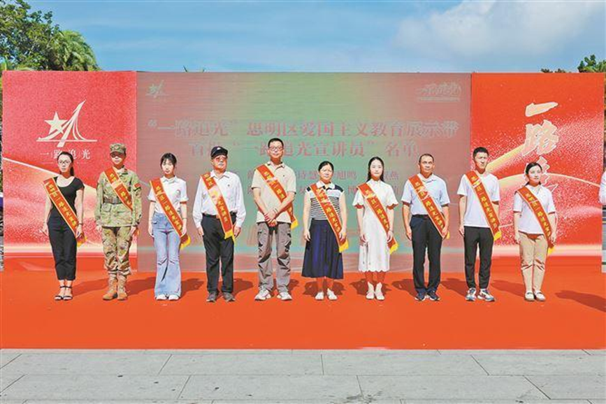 「很光榮成為『一路追光宣講員』,我將用通俗易懂的語言,講好思明紅色故事。」宣講員代表徐友群為自己擁有這一新身份感到自豪。對思明區紅色歷史文化已十分熟悉的他說,「今年是中國人民抗日戰爭暨世界反法西斯戰爭勝利80周年,思明區聚焦愛國主義教育主題,用心打造展示帶,這一做法非常有意義,也很創新。」面對即將到來的暑假,他將發揮所長讓更多孩子了解這些歷史,讓愛國的種子在孩子心中生根發芽。