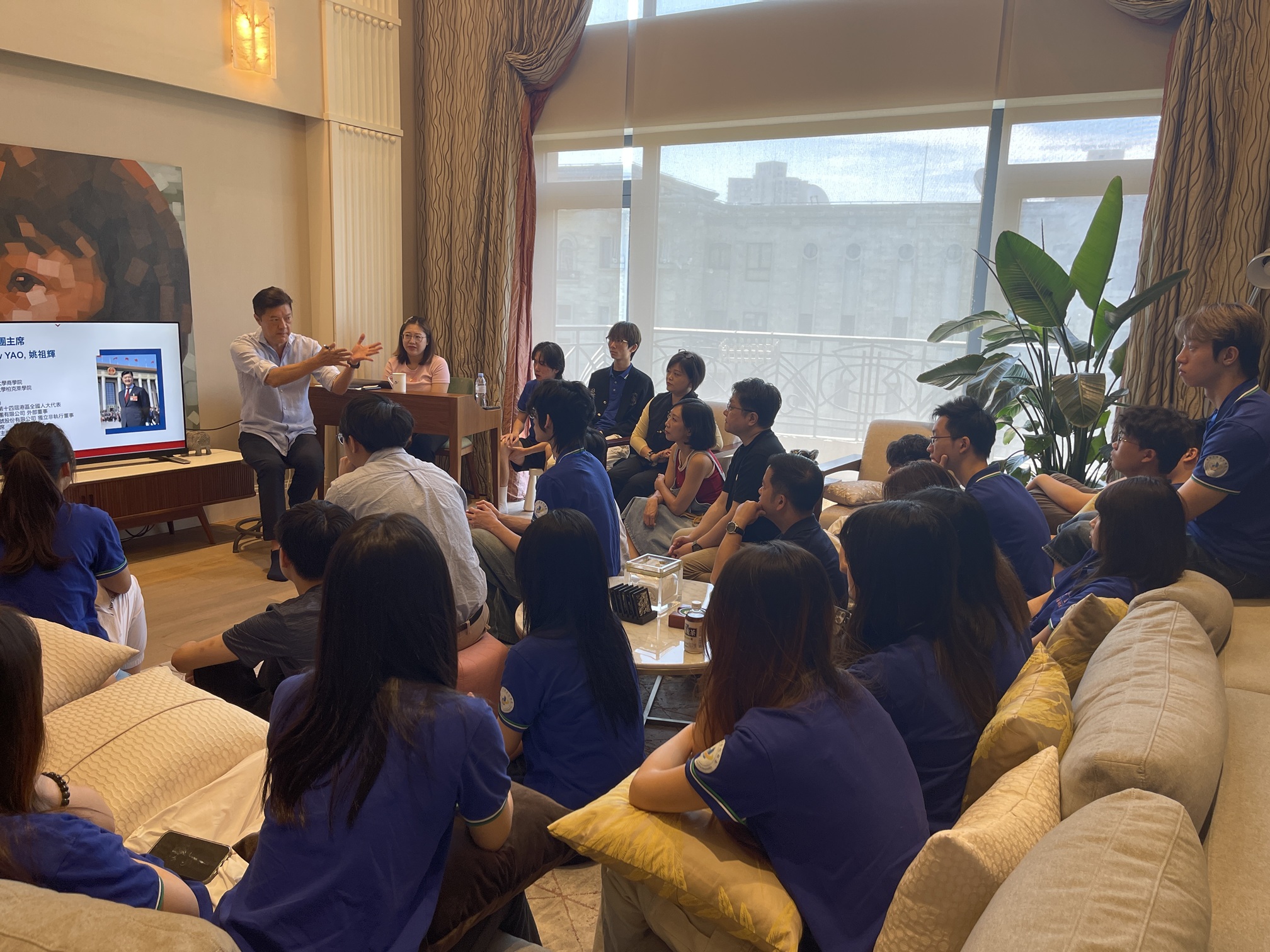 (大公文匯全媒體記者 夏微 上海報道)29日,正在上海參加「滬港同心實習計劃」的百餘位港生受邀來到滬港社團總會主席姚祖輝的家中,展開了一場「CEO TALK」,姚祖輝圍繞國家發展、新質生產力、香港新興產業、滬港交流等等主題,結合自己的人生經歷與港生們展開分享。