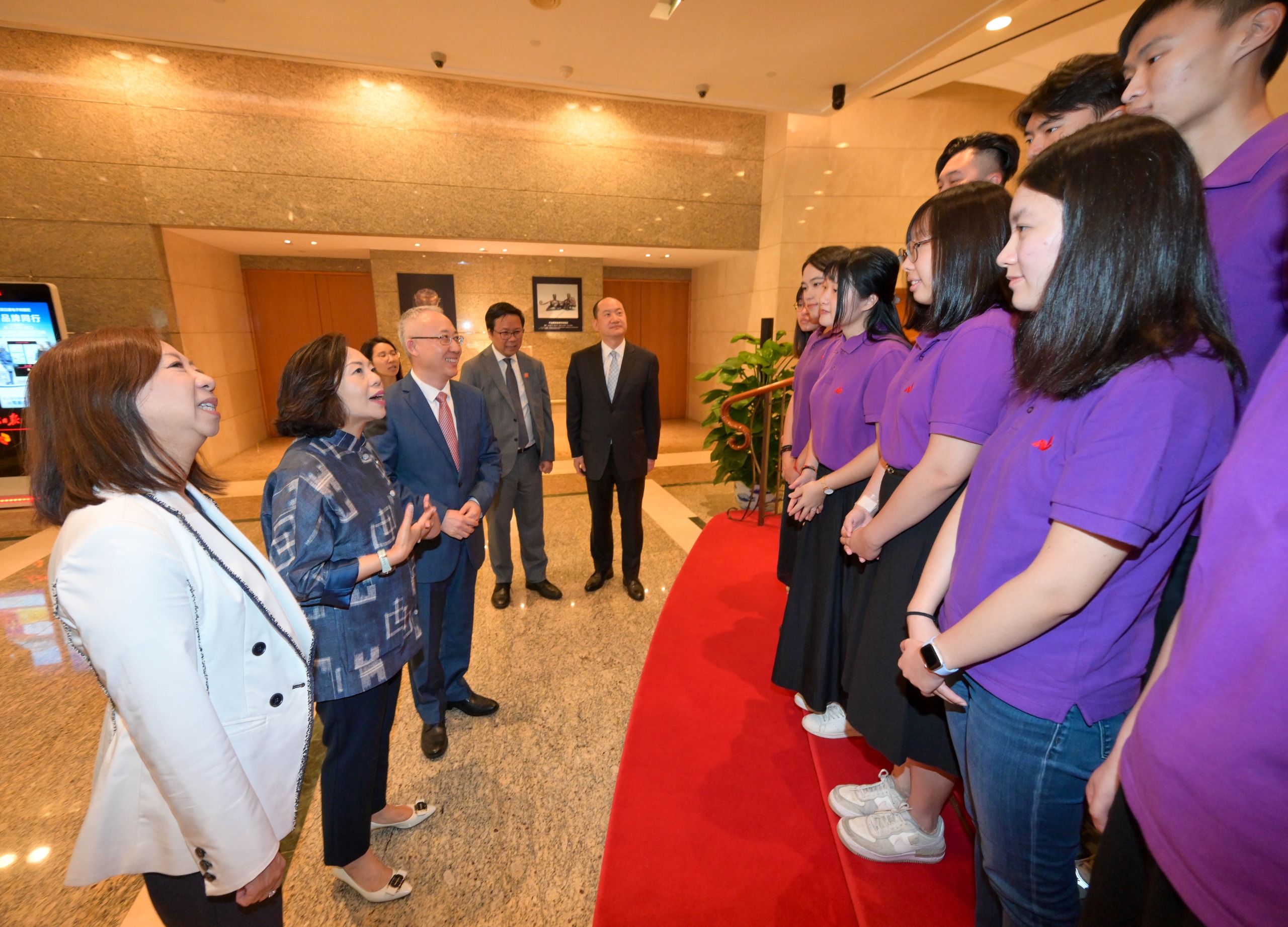 麥美娟感謝特派員公署對香港的青年發展工作的支持,特別安排今天的參訪活動。她又感謝特派員公署國際組織部代表為青年實習生介紹特派員公署的工作,讓他們有機會近距離了解國家外交事務,並認識香港在國家對外開放與全球治理中的獨特角色與優勢。她勉勵實習生要珍惜這次的義務實習機會,向世界展示香港背靠祖國、聯通世界的獨特優勢,說好國家及香港故事。