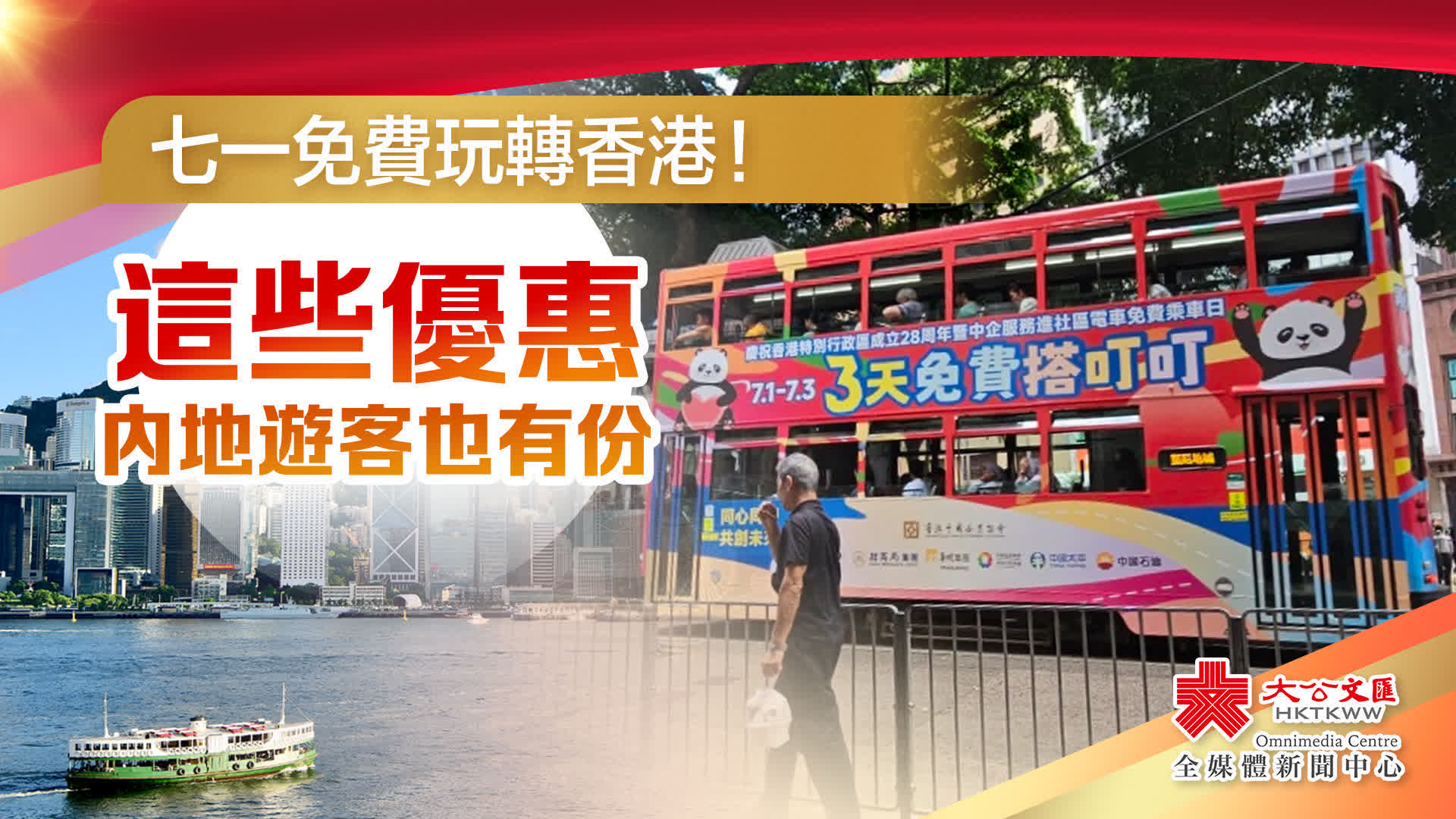 7月1日至3日,免費乘搭全線載客電車,及天星小輪的「尖沙咀-灣仔」航線。