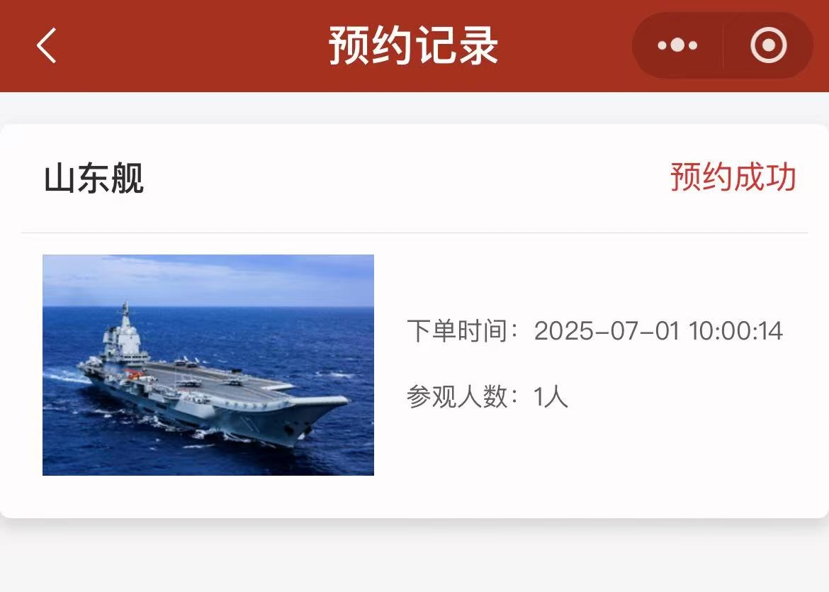 5.參觀山東艦時,因局部通道較為狹窄且需攀爬,為確保安全,謝絕11周歲(含)以下兒童、孕婦以及其他行動不便人士預約參觀,12周歲至17周歲(含)以下未成年人須與監護人同時預約,並由監護人陪同參觀。