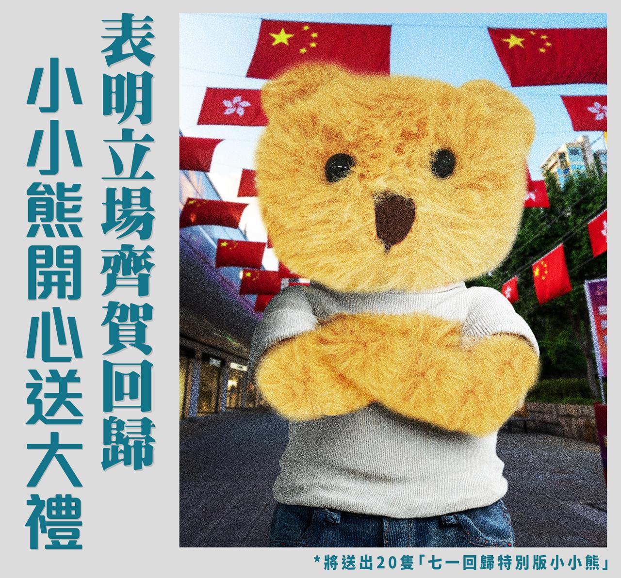 大公文匯全媒體報道,為慶祝香港回歸祖國28周年,全港各區均裝點着鮮艷的國旗區旗,形成一片紅火壯麗的旗海。值此喜慶時刻,保安局推出了「小小熊表明立場賀回歸」特別有獎活動,邀請全港市民共同參與,記錄這份節日榮光,更有機會贏取極具紀念意義的限量版禮品。活動鼓勵市民走出家門,尋找身邊最美的國旗布置景觀進行打卡拍照,用鏡頭記錄下慶祝回歸日的動人景致,分享這份喜悅與自豪。
