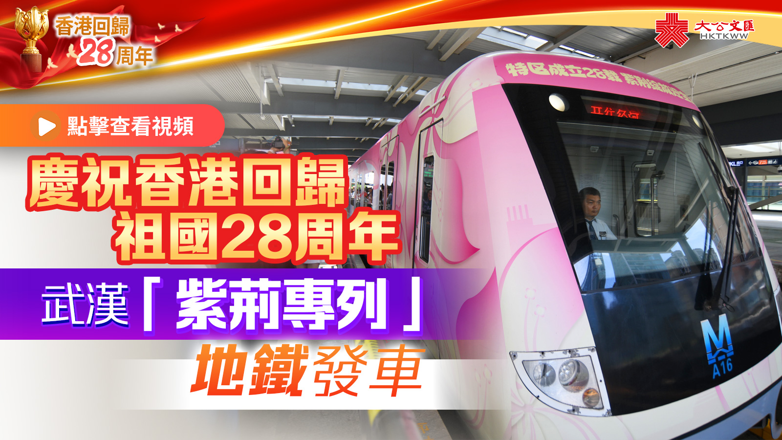 (大公文匯網記者 張帥、歐陽思柔 武漢報道)今年7月1日是香港回歸祖國28周年紀念日。當日,一列滿載祝福與喜悅的「紫荊專列」從武漢地鐵1號線三陽路站發車,盛放的紫荊花圖案與動感的全運元素交相輝映,駛入城市軌道,也駛入祖國與香港同心同行的新紀元。