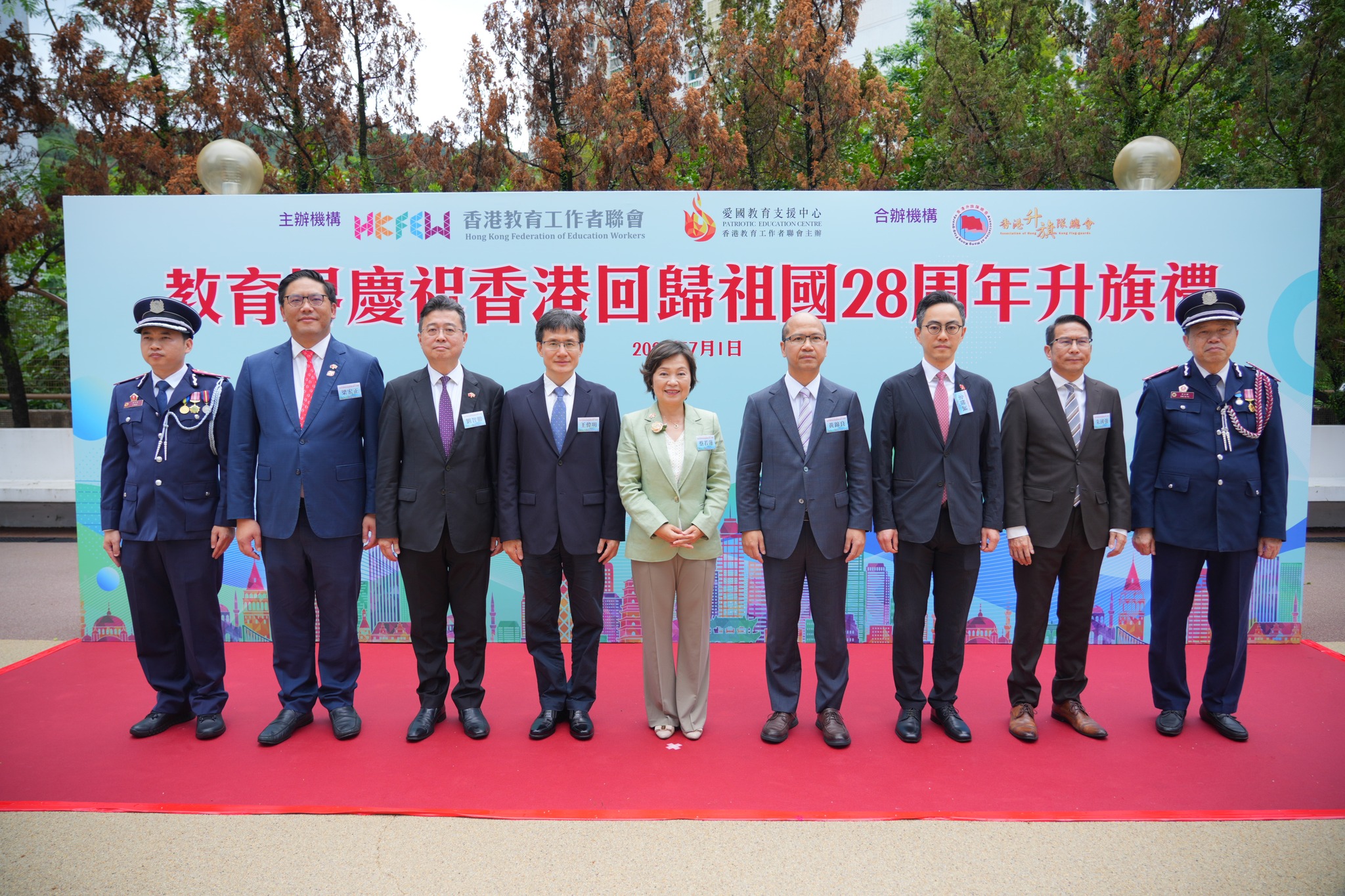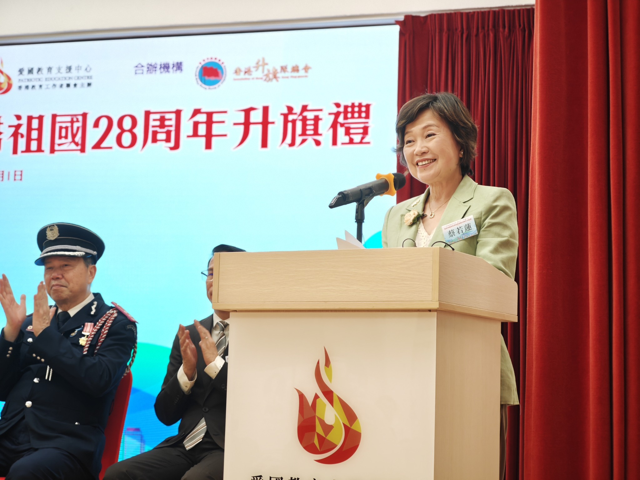 教育局局長蔡若蓮今日在儀式後前往愛國教育支援中心,與教育界師生共同參與慶祝香港回歸升旗禮。蔡若蓮在社交媒體發文表示,擔任升旗隊的同學身着整齊制服,精神抖擻,充分展現了年輕一代深厚的家國情懷。