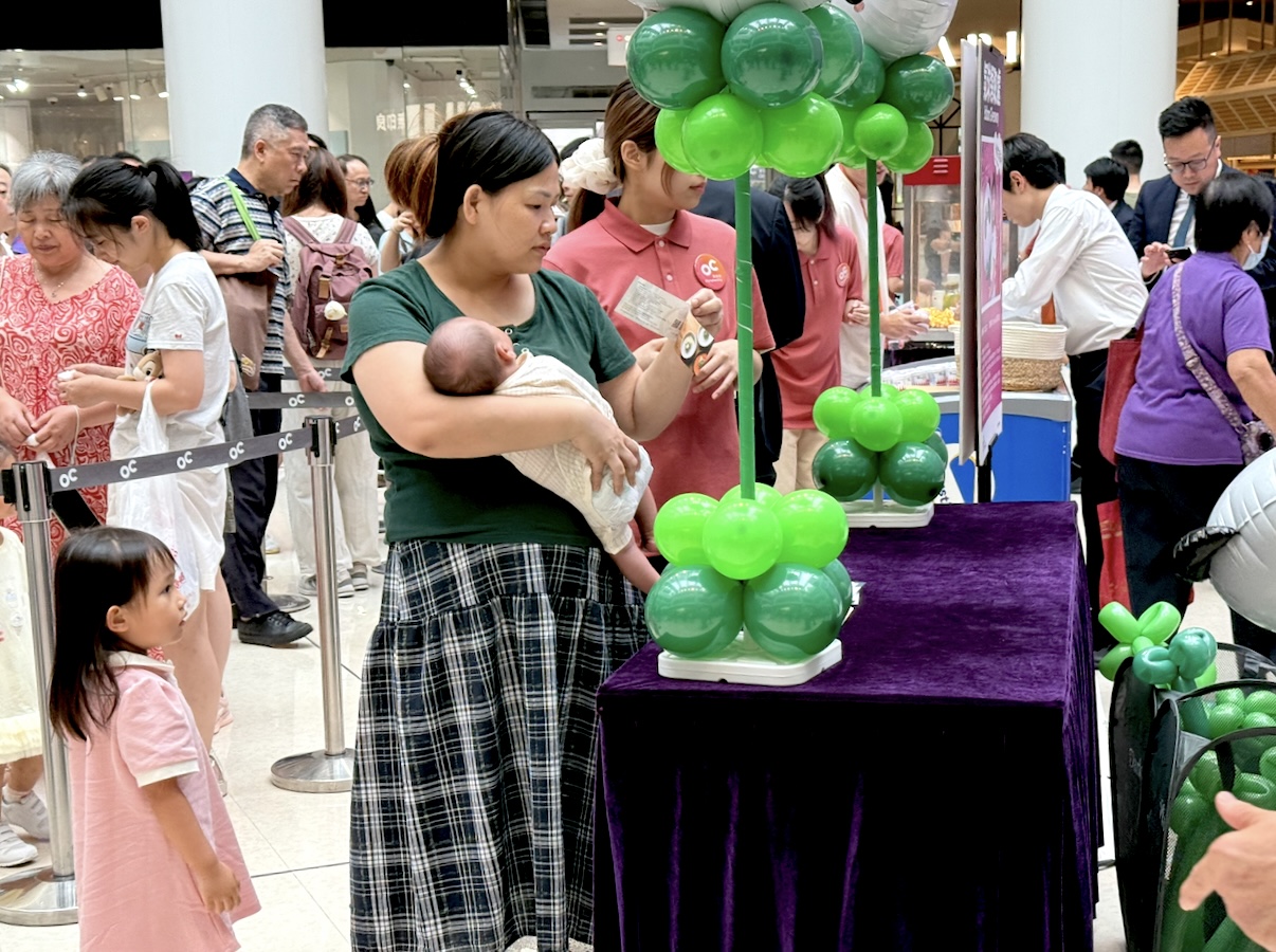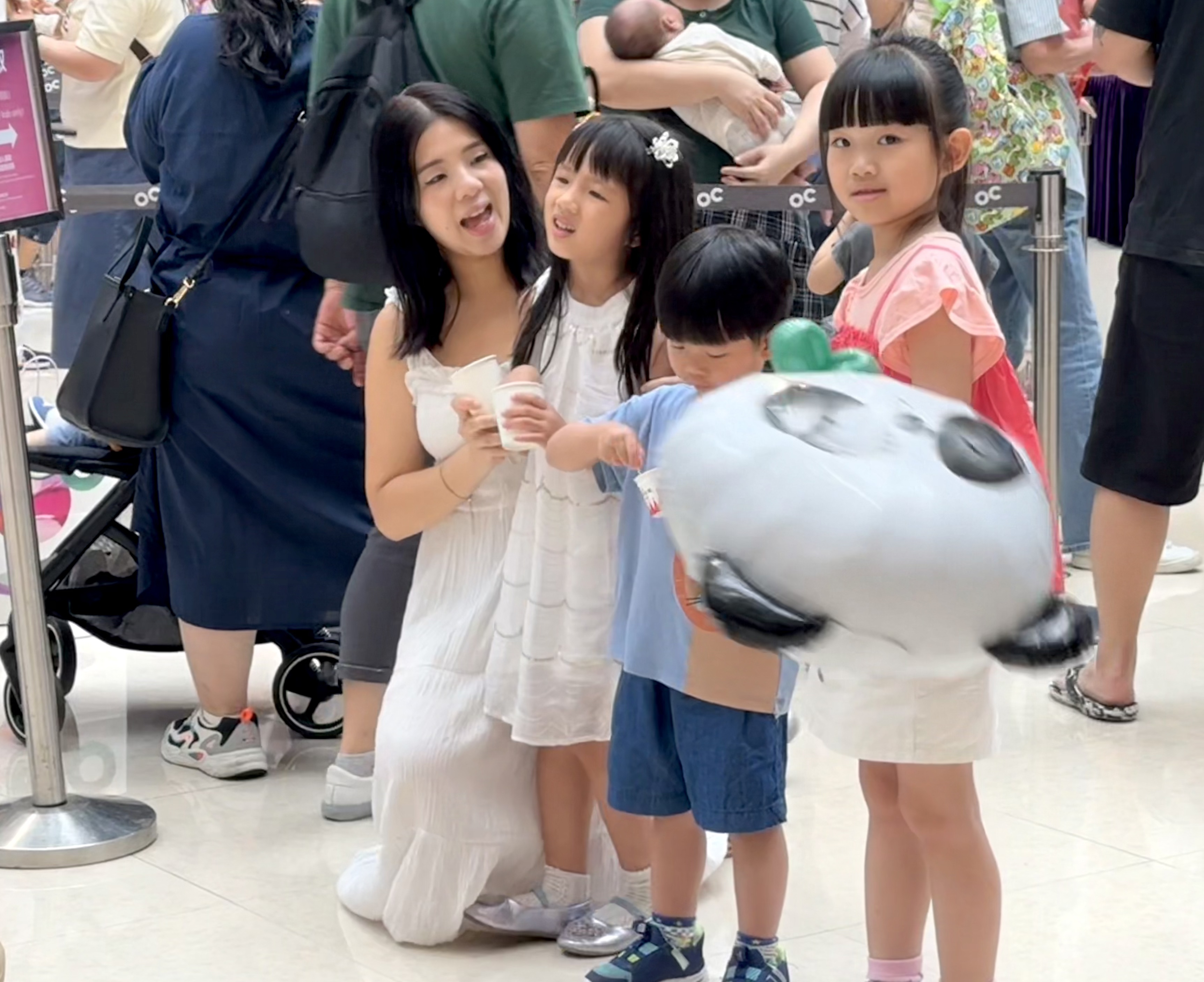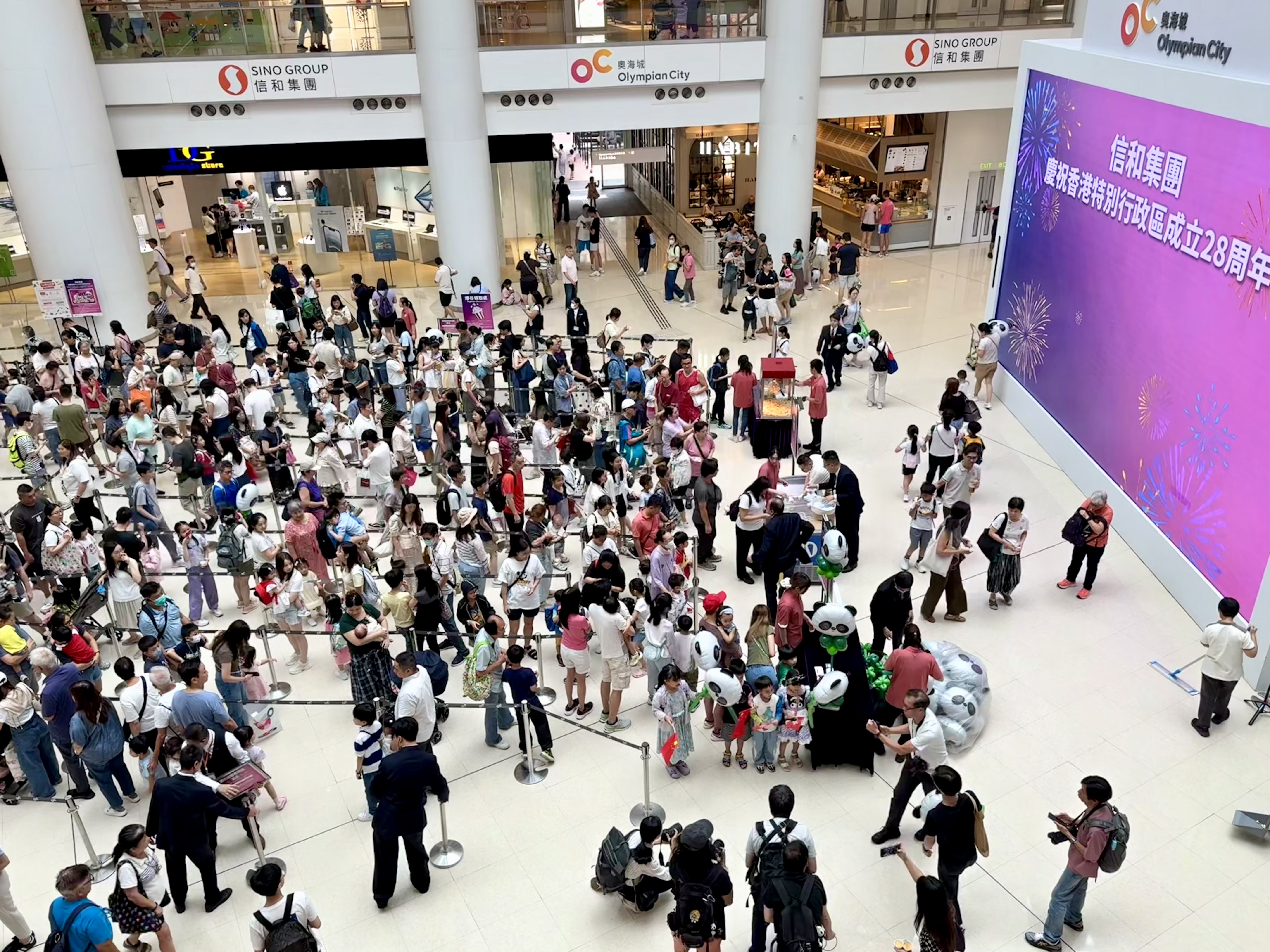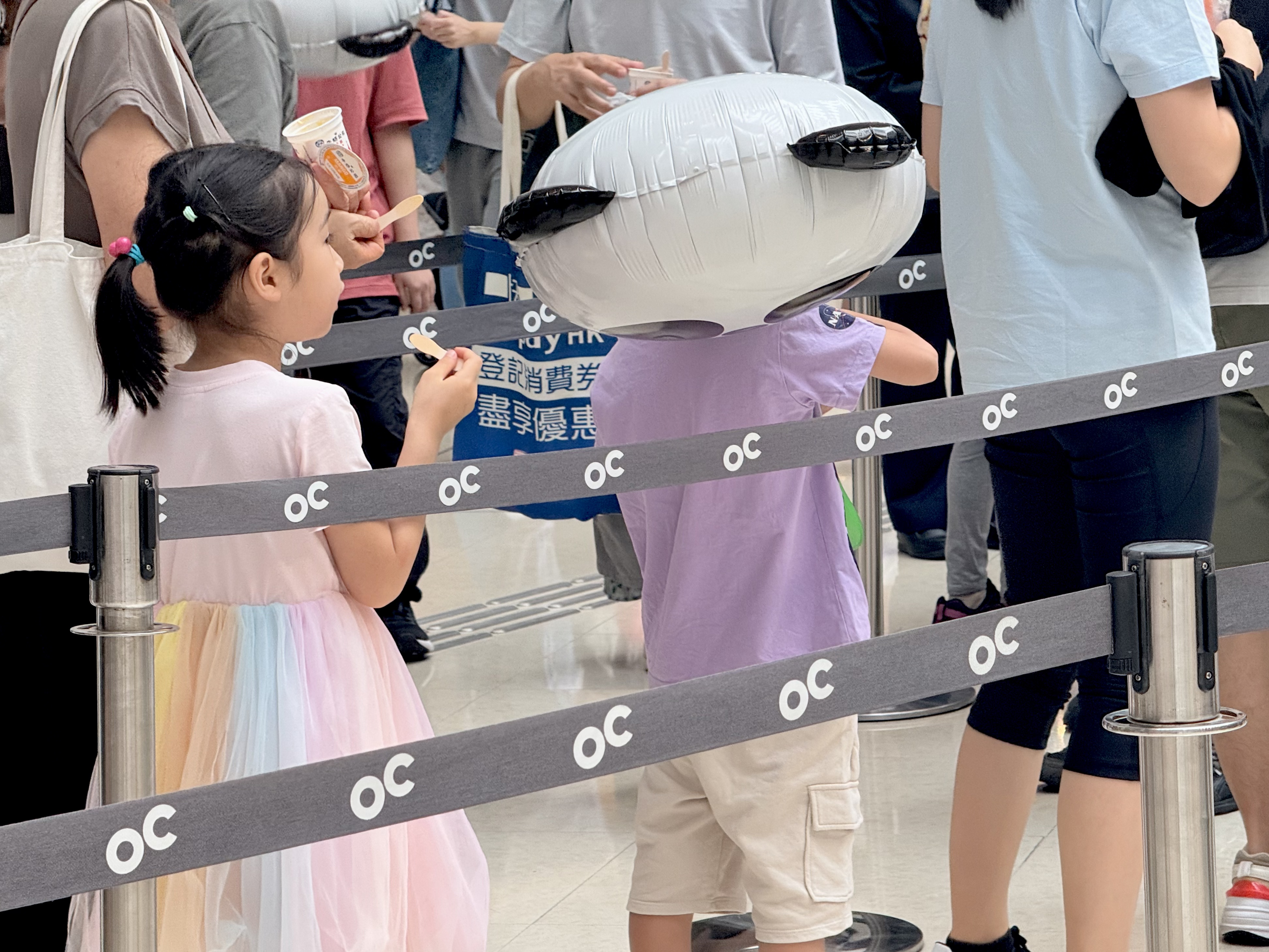 信和集團旗下商場奧海城,今日同樣成為親子休閒大熱地點。信和集團於中午12時起在奧海城派發雪糕及即製酥脆爆谷,同時為小朋友送上大熊貓造型氣球。記者下午來到奧海城,見活動區域聚集大批市民排隊領取小食及氣球,許多小朋友拿到大熊貓造型氣球後興奮地與家人合影,滿滿節日中的熱鬧幸福氣息。