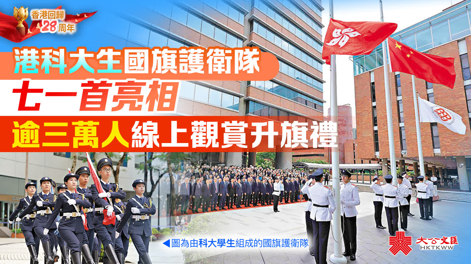 在港科大,由24名學生組成的國旗護衛隊在該校升旗儀式中首度亮相。成員之一的理學院一年級生唐建博表示,「這是普天同慶的日子,雖然我未曾經歷祖國的艱難歲月,但見證香港背靠祖國、兩地發展蒸蒸日上,深感驕傲。」
