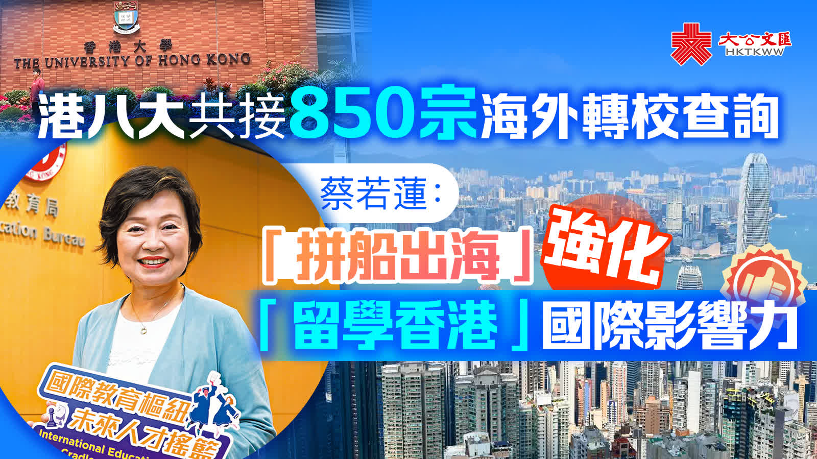 (香港文匯報 記者 陸雅楠)本屆特區政府上任以來,積極落實多項措施打造「留學香港」品牌及推進國際教育樞紐建設,以匯聚及培育世界一流人才。教育局局長蔡若蓮表示,建基於歷代的教育投入、高等教育完善制度、院校管治優化及教研團隊努力下,香港高等教育國際化於「一國兩制」獨特優勢下成果卓越;而在近月因美國高教政策突變衝擊國際人才流動的形勢中,香港便發揮了重要影響力支援受影響學生。據最新數據,香港八所資助大學已就此接獲850宗海外學生轉校查詢,發出至少36份錄取通知。她又透露,由下年度起大學校長會國際化小組的推廣撥款將倍增至4,000萬港元,以加強港校全球招生力度,局方亦會以「拼船出海」模式舉辦海外教育展,強化「留學香港」品牌的國際影響力。