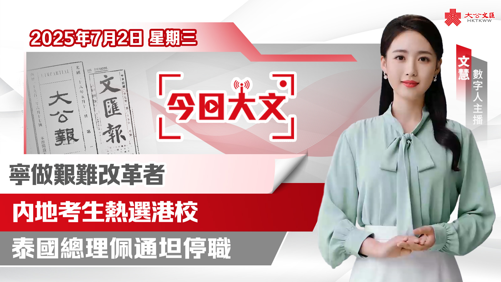 今天是2025年7月2日(星期三),大公文匯網與您速覽報紙看點。