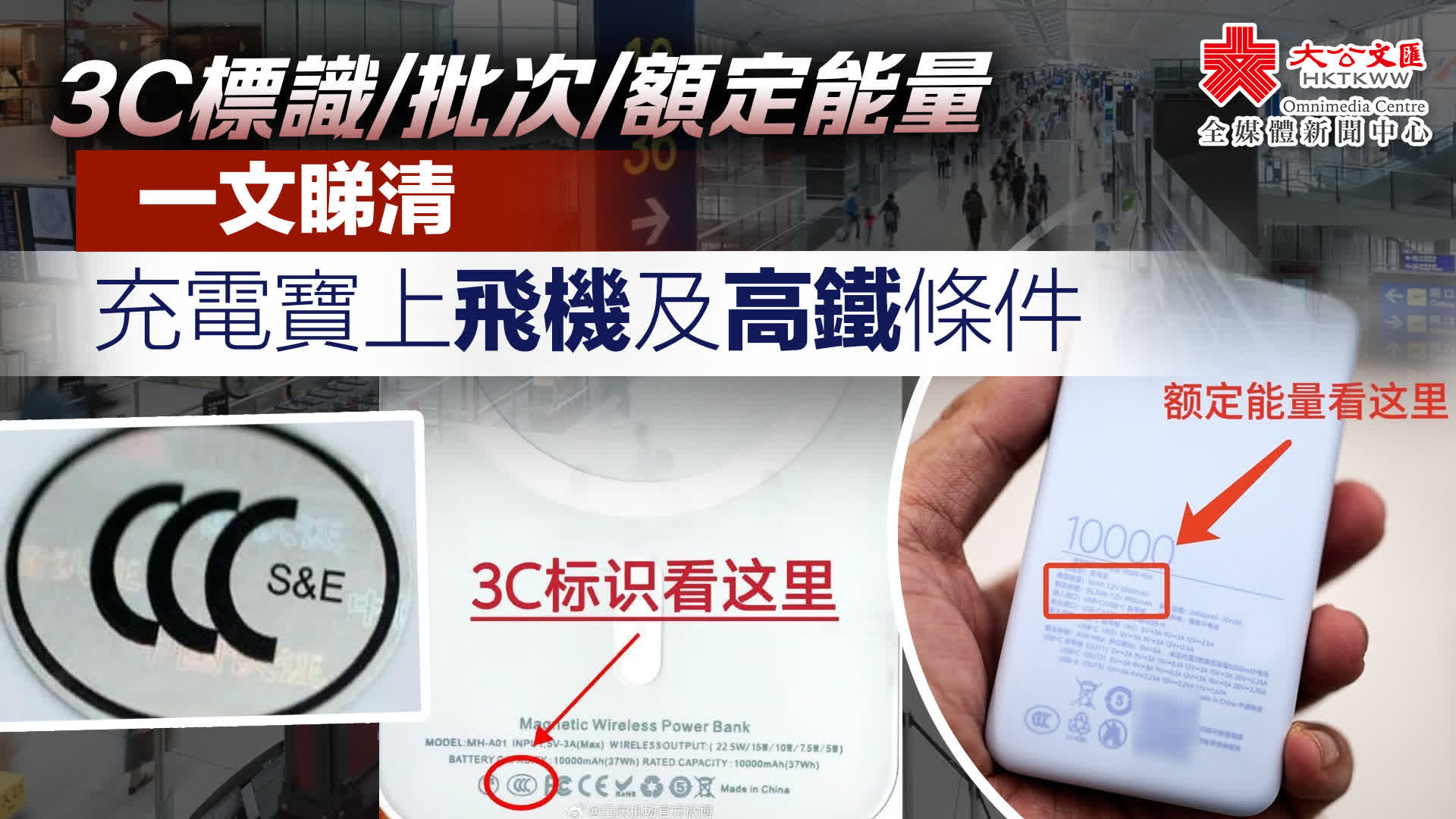 大公文匯全媒體報道,近日,民航局禁止攜帶沒有3C標識、被召回範圍的充電寶上機規定引發關注。坐飛機和高鐵,分別可以攜帶什麼樣的充電寶?大公文匯全媒體帶你一文識清!